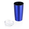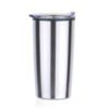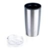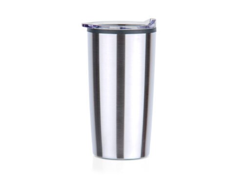 Vaso de doble pared con recubrimiento interior en PP y tapa plástica con cierre corredizo. Capacidad: 600ml, peso: 220g. Temperatura recomendada de ≤60 °C.