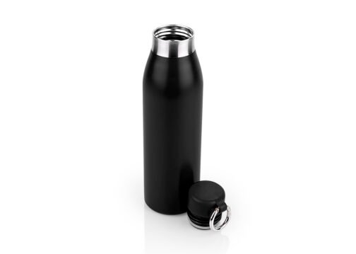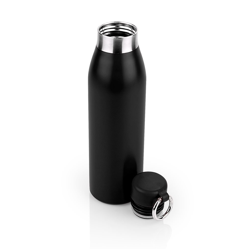 Botella en Acero inoxidable. Tapa rosca y gancho carabinero para transportar. Base antideslizante. Capacidad 500 ml / 17 Oz