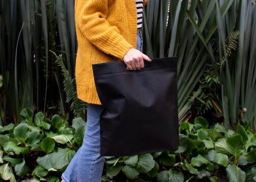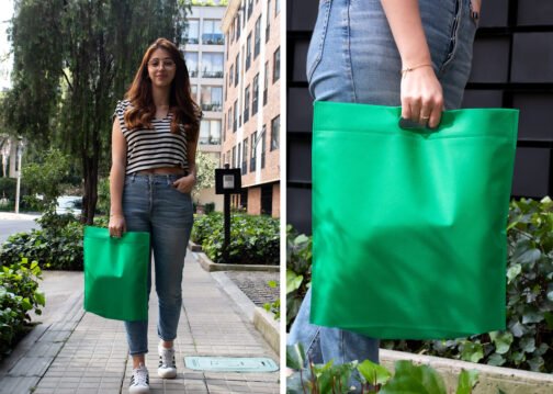 Bolsa ecológica termosellada, con manija troquelada. Útil para librerias, mercado, tiendas de comestibles, etc.