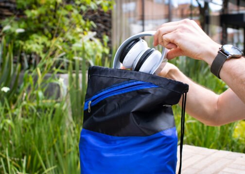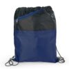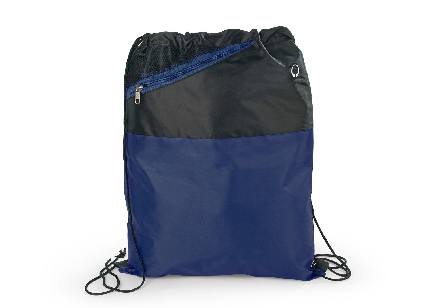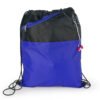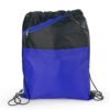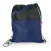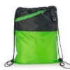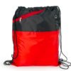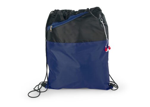 Mochila dos colores con cordón para ajustar y cargar. Bolsillo delantero en malla con cremallera y orificio para audífonos.