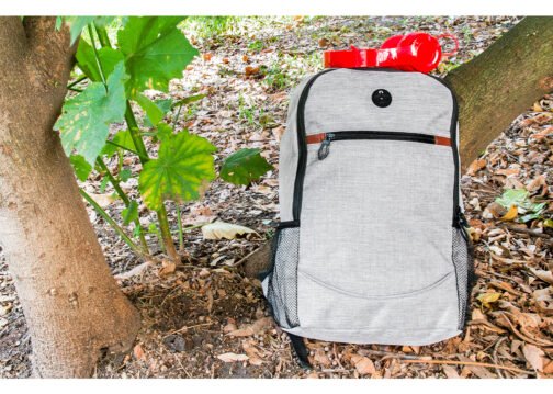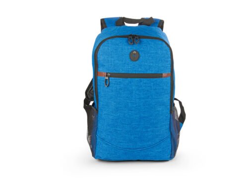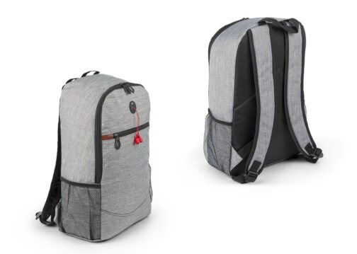 Morral con cargaderas ajustables, bolsillos laterales en malla, bolsillo frontal y principal con cierre en cremallera, con salida de audífonos.