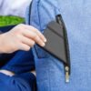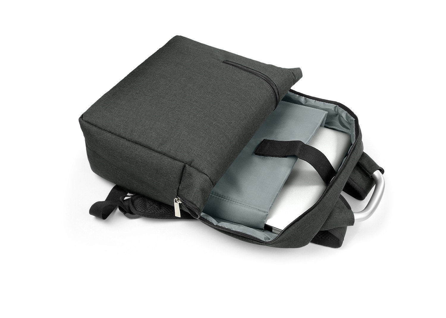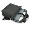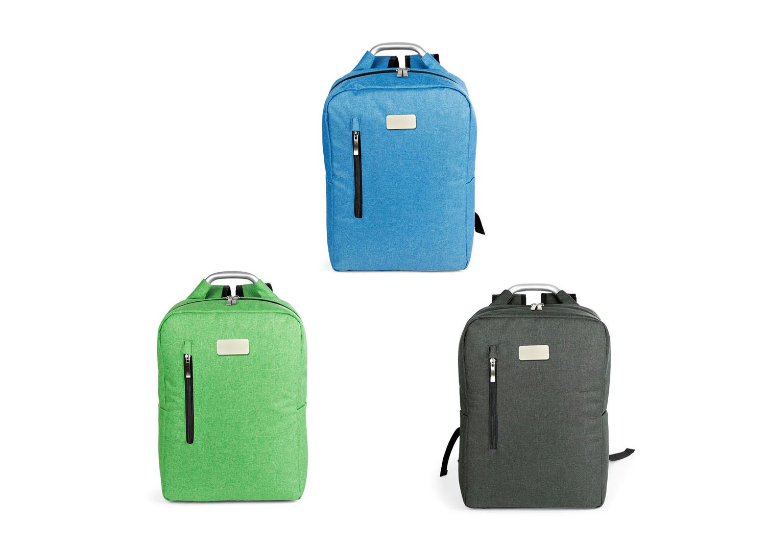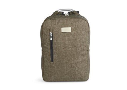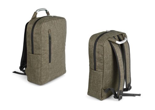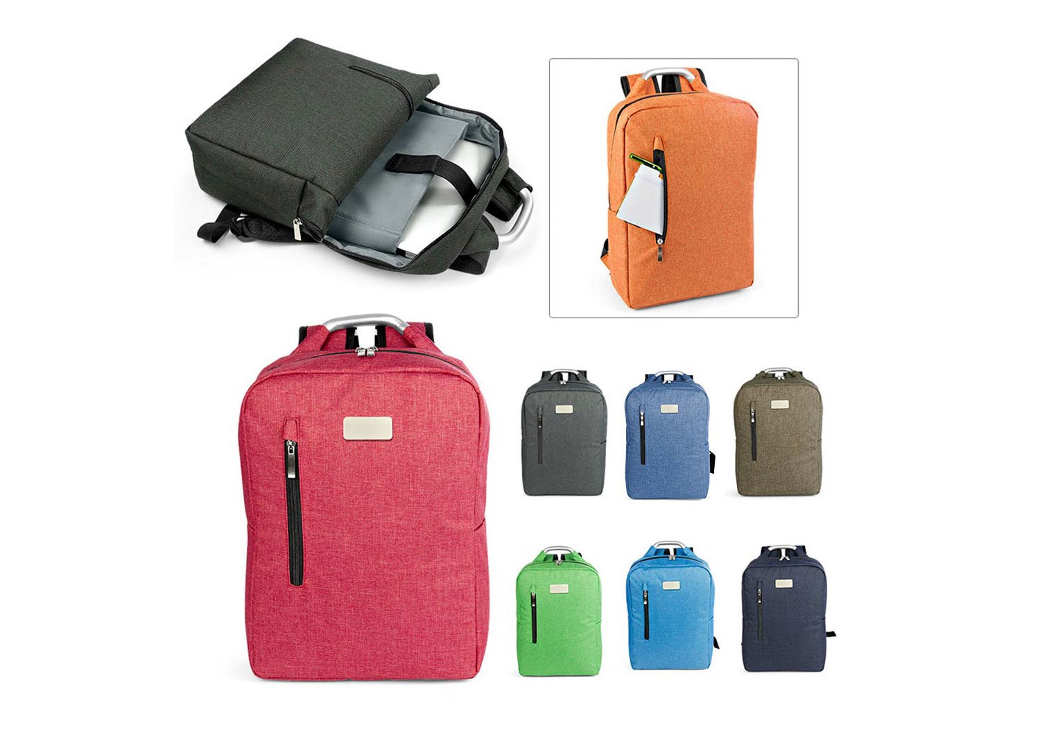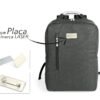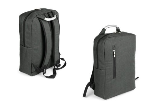 Morral con agarradera en Aluminio y cargaderas acolchadas, bolsillo principal con doble cremallera y compartimento con velcro para portátil de 14″, bolsillo interior para bolígrafo y libreta. Bolsillo frontal con cierre de cremallera. Incluye placa metálica para marca láser.