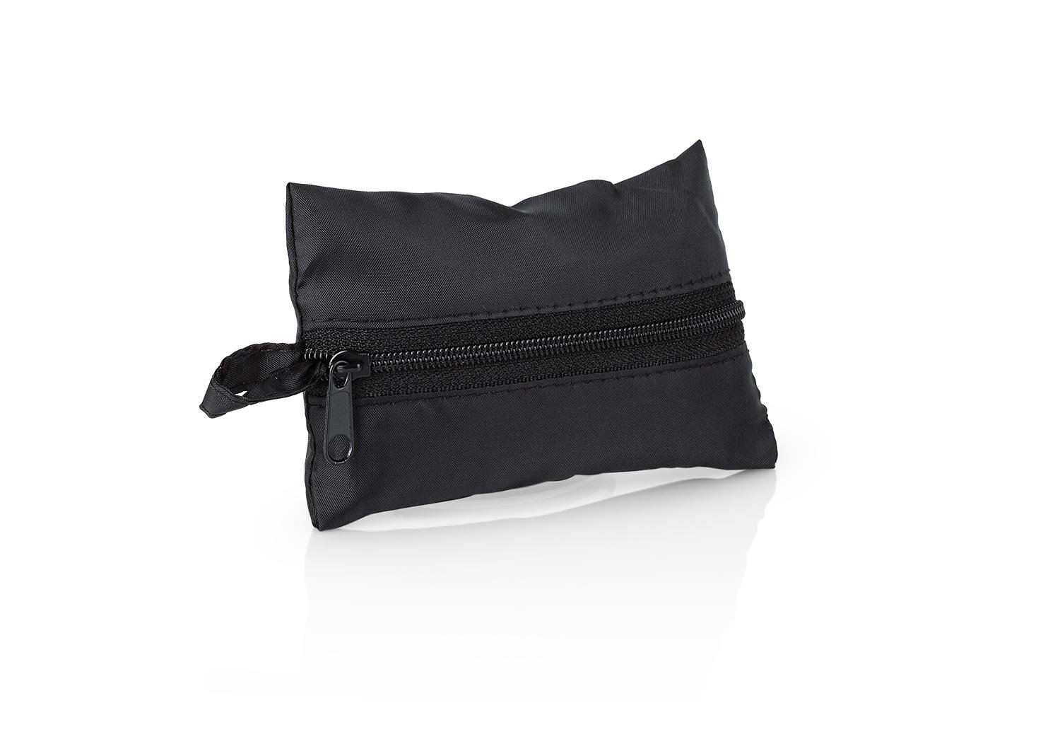 Bolsa plegable con estuche cocido de 11 x 7,5 cm con cierre en cremallera, práctico para llevar en bolsillos.