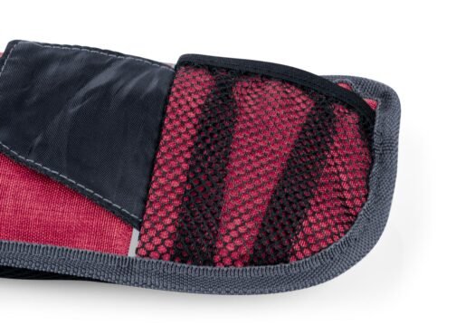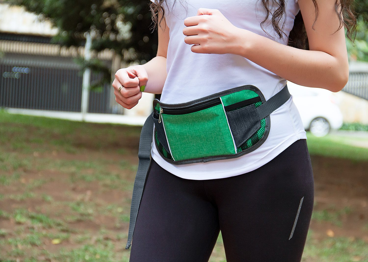 Canguro con correa ajustable de 105 cm y cierre tipo click, con bolsillos frontales en malla de fácil acceso ideales para llevar cables, audífonos etc.