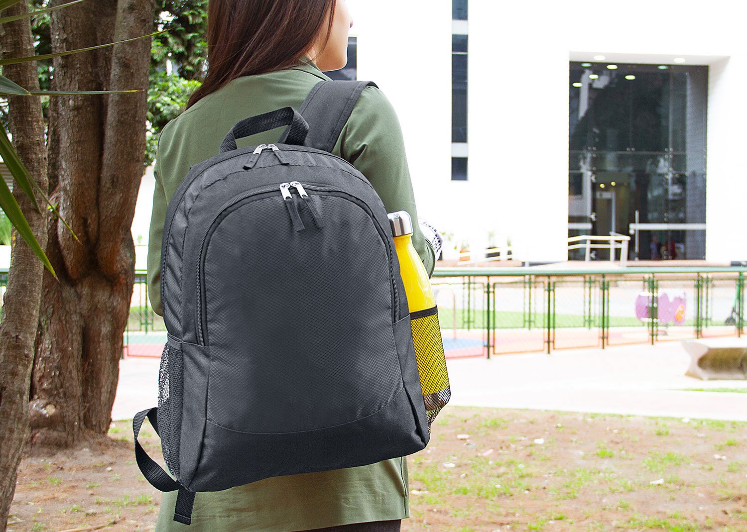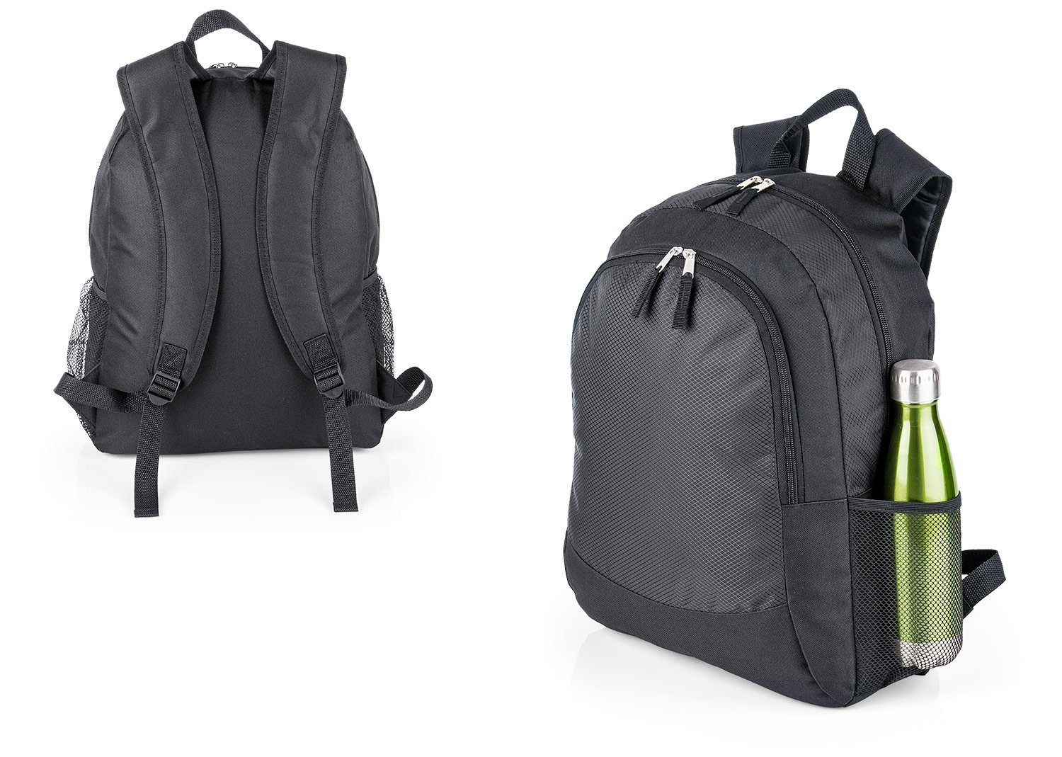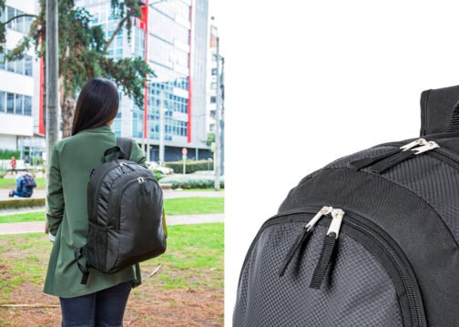 Morral con cargaderas acolchadas ajustables. Bolsillo principal y frontal con cremallera doble y laterales en malla ideal para botellas, cables o audífonos, etc.
