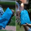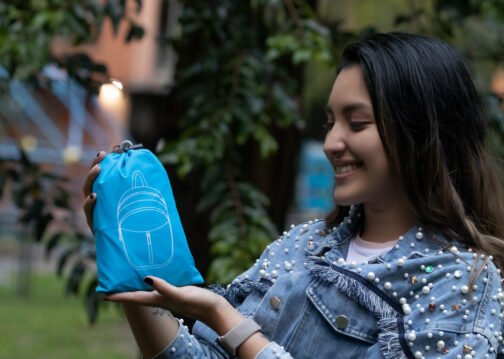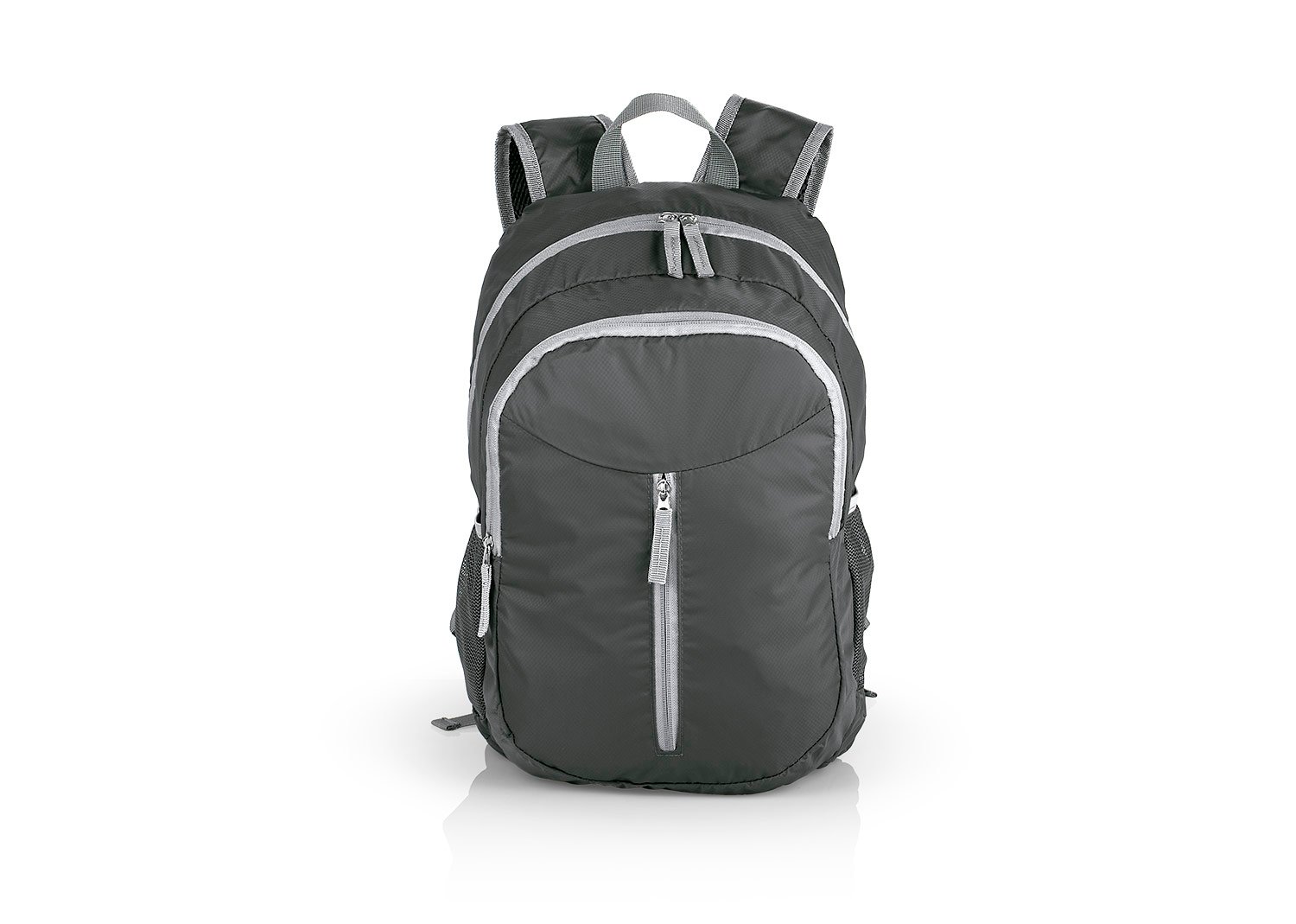Morral plegable impermeable, con cargaderas ajustables, bolsillo frontal, medio y principal con cremallera, 2 bolsillos laterales en malla para botellas y cables. espacio interior con compartimento ideal para documentos. Incluye bolsa en mismo material para guardar y transportar fácilmente cuando está plegado.