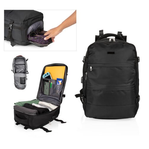 La maleta ideal para viajes en avión. Sus medidas (alto x ancho x profundidad) son aptas para la mayoría de vuelos, como equipaje de mano. Su bolsillo principal, de gran tamaño, se puede abrir hasta 180 grados lo que permite empacar fácilmente. Además, su diseño es multifuncional; incluye un compartimento especial para zapatos y un bolsillo frontal impermeable que se puede utilizar para artículos húmedos. Dotada con un puerto de carga USB que se puede conectar a un multicargador, así como varios bolsillos adicionales de diferentes tamaños y para distintos propósitos.