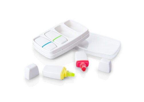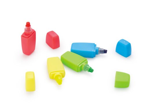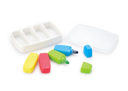 Set de 4 resaltadores de parafina (no se secan), en estuche plástico.