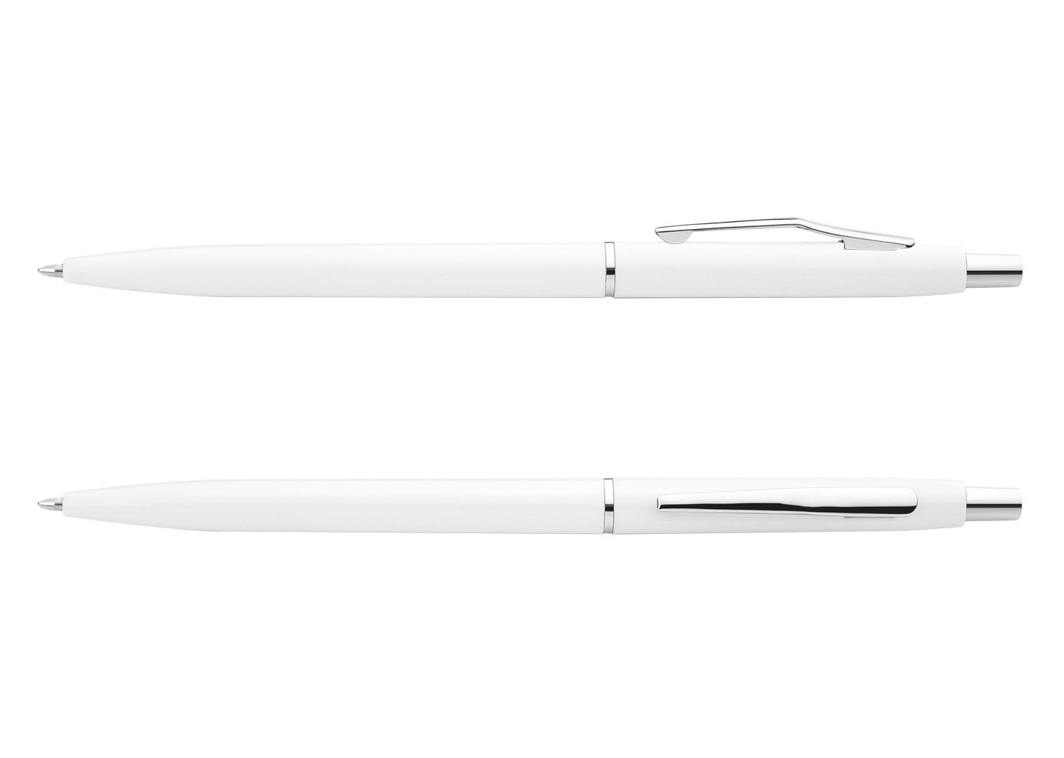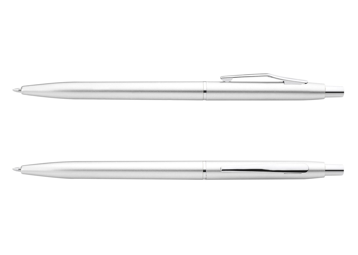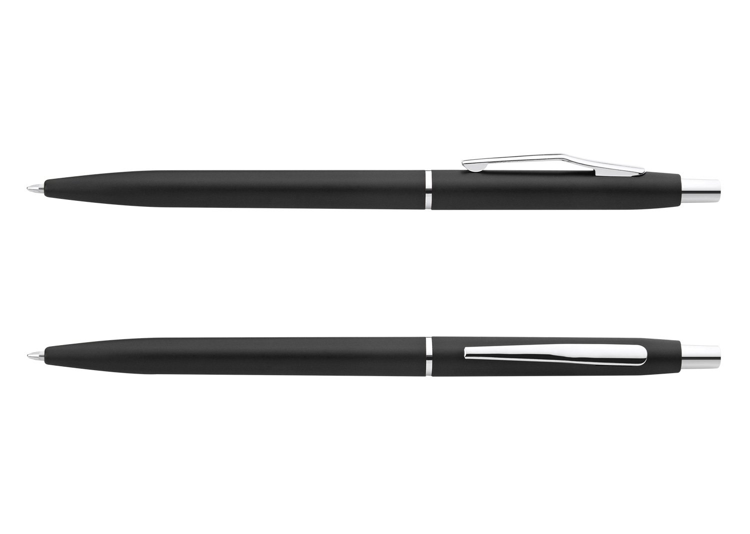 Bolígrafo plástico con acabado mate clip plateado. Sistema de apertura retráctil.