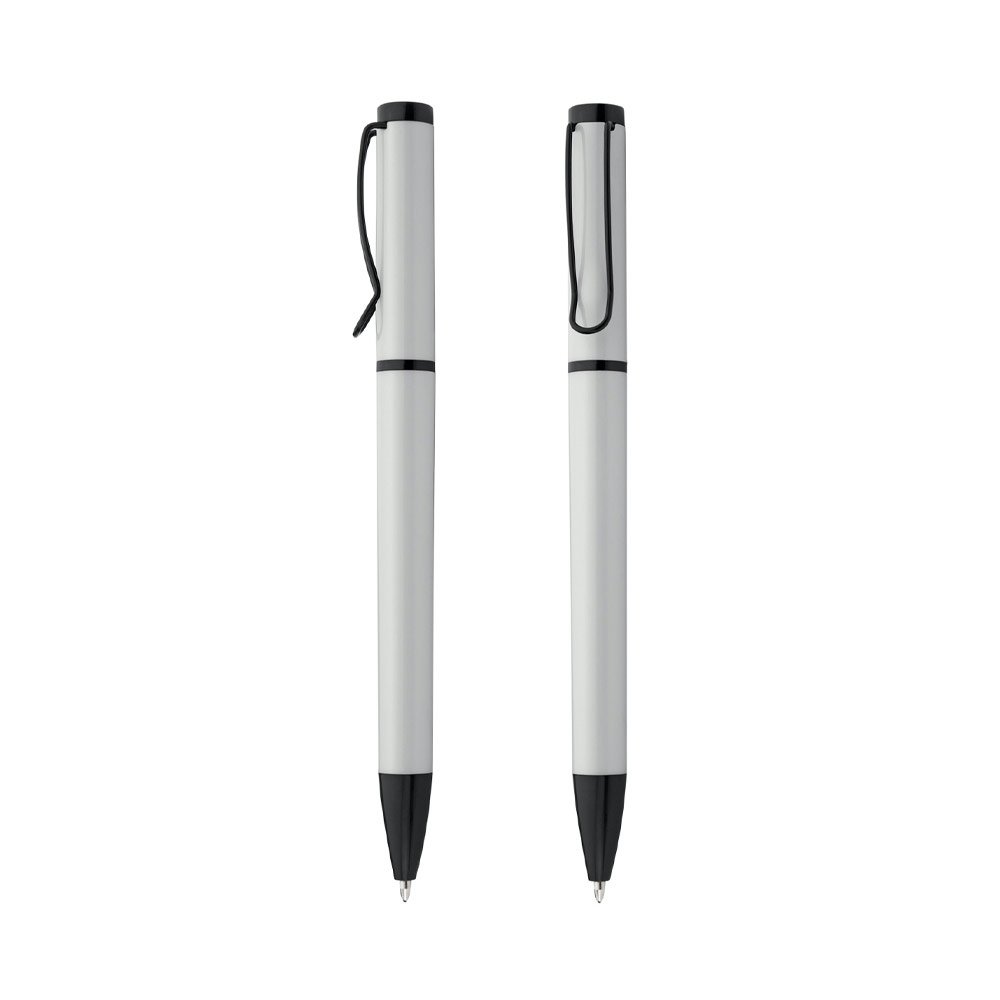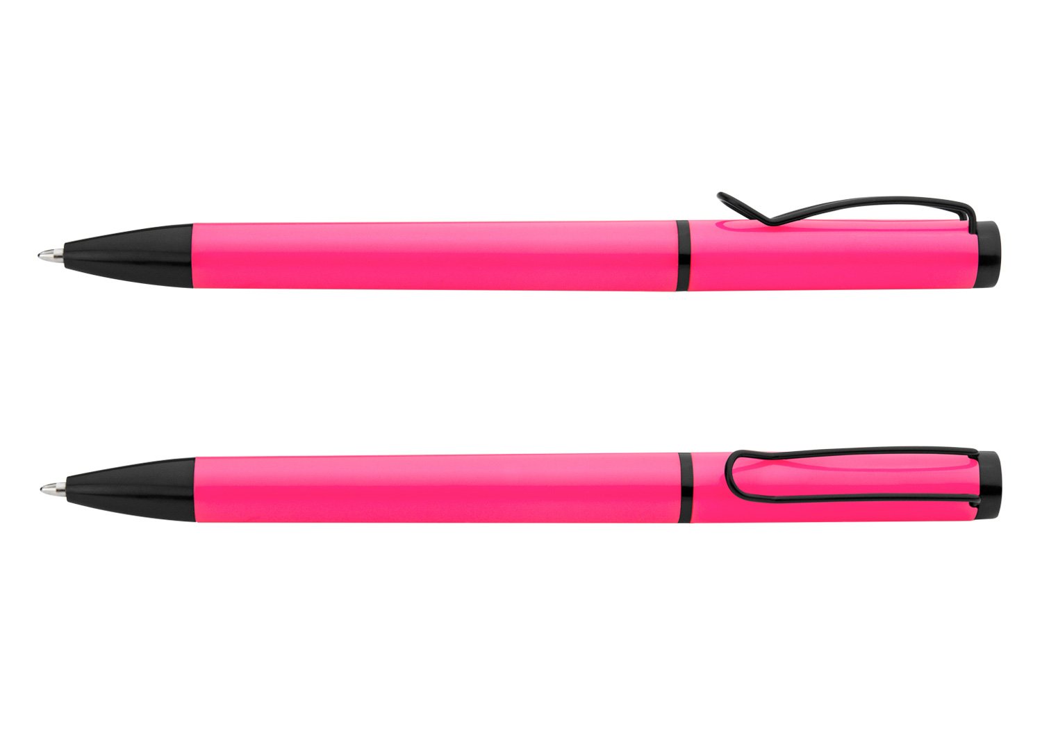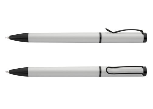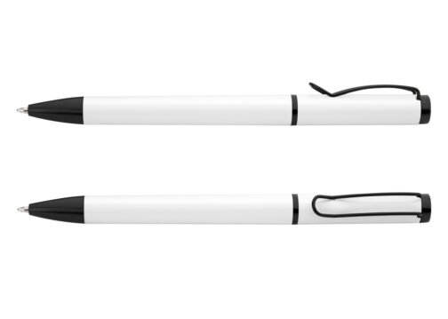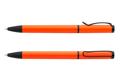 Bolígrafo de color sólido, punta y clip de color negro. Sistema de apertura Twist.