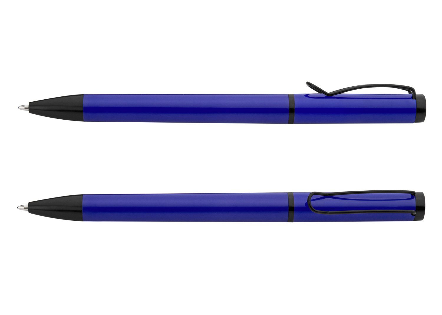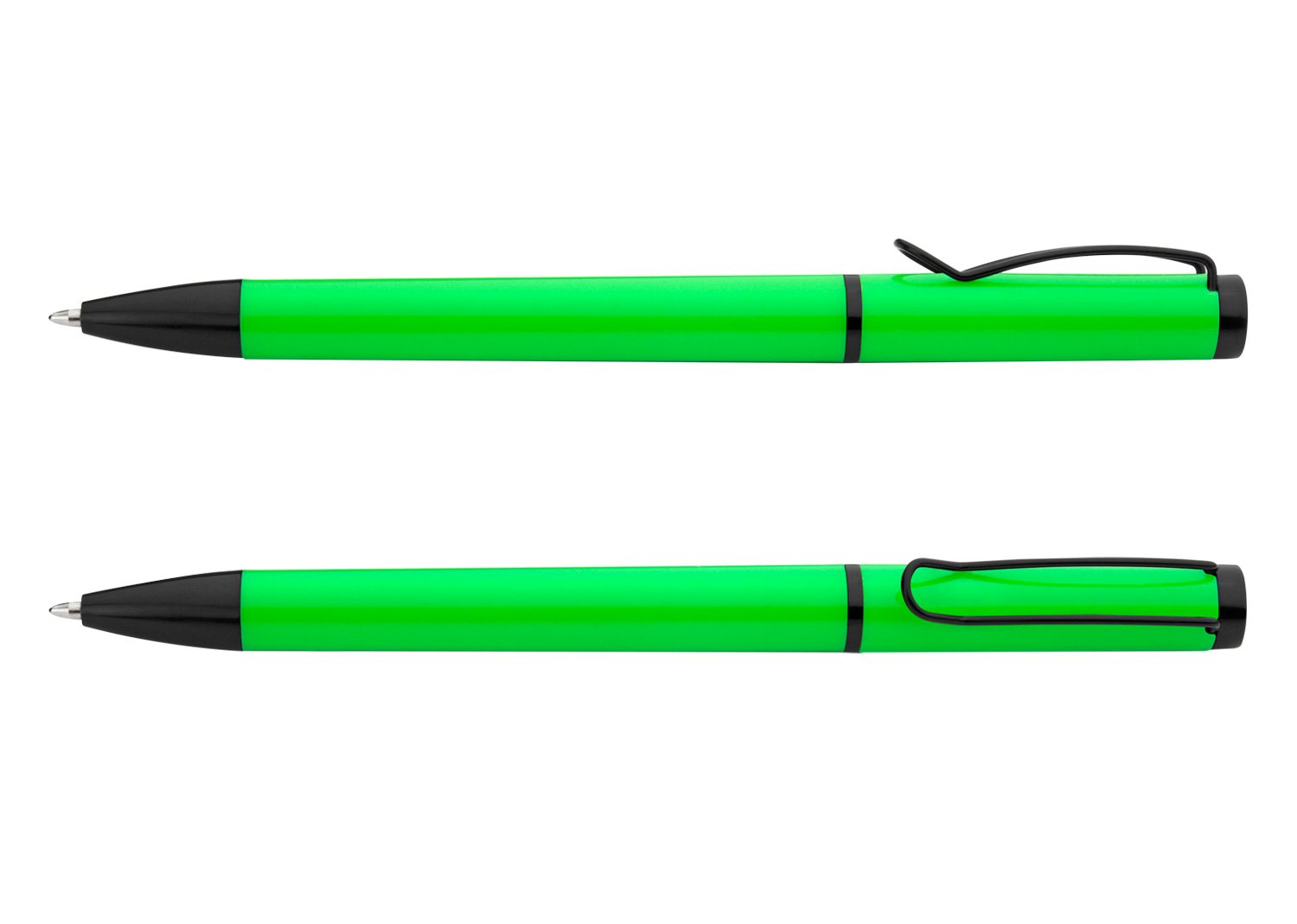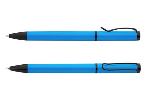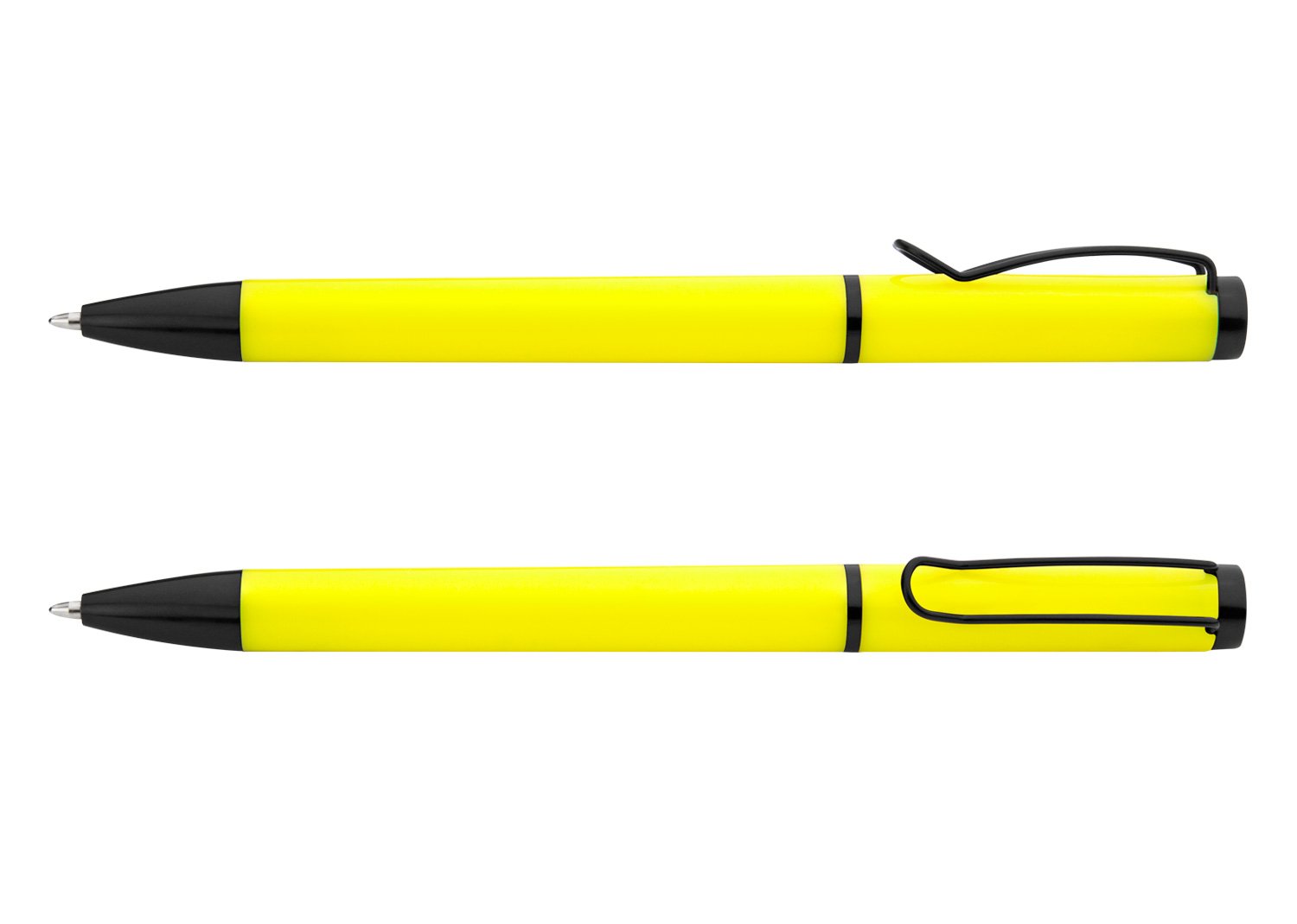 Bolígrafo de color sólido, punta y clip de color negro. Sistema de apertura Twist.