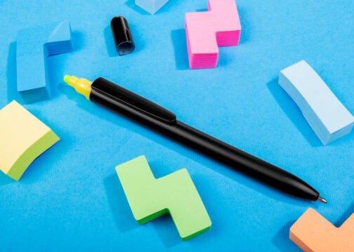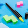 Bolígrafo plástico sistema twist y resaltador con tapa.