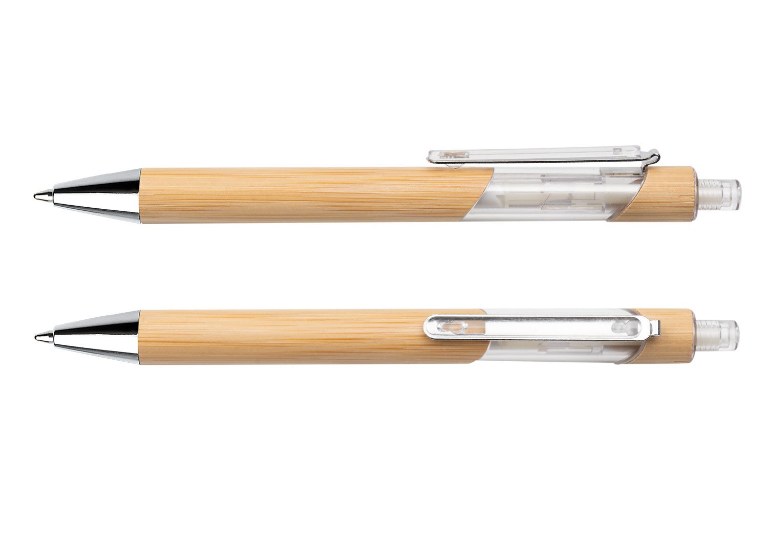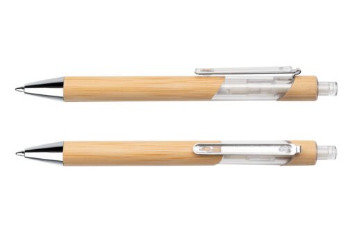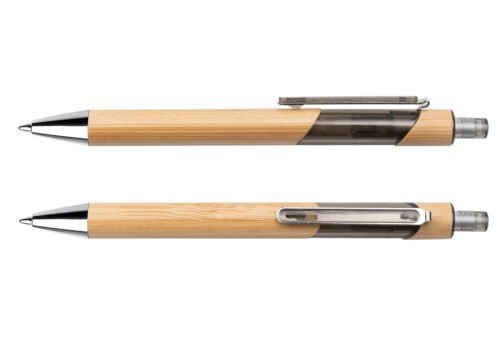 Bolígrafo ecológico de bambú con sistema de apertura retráctil gracias a la combinación con el plástico transparente su diseño es más llamativo.