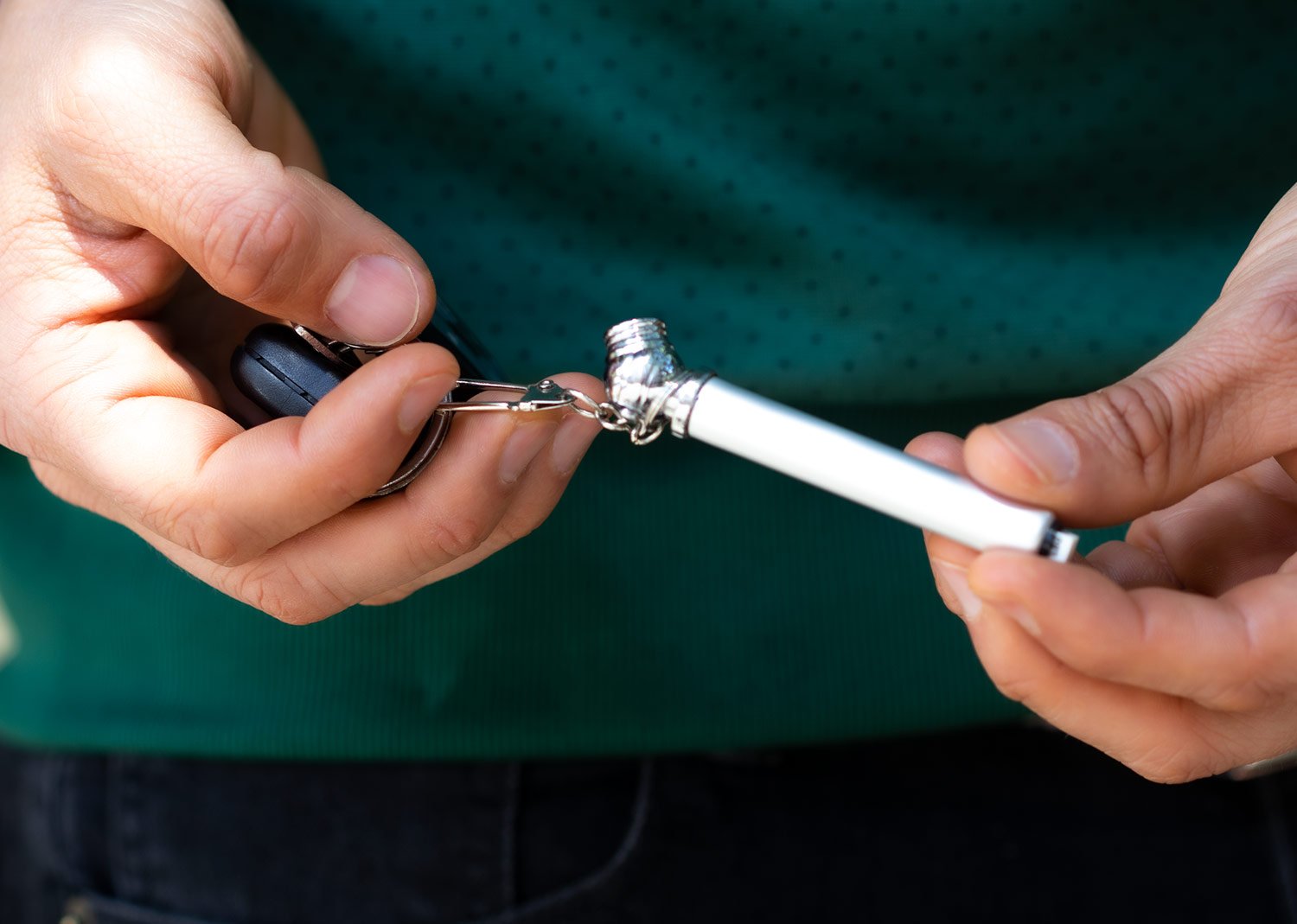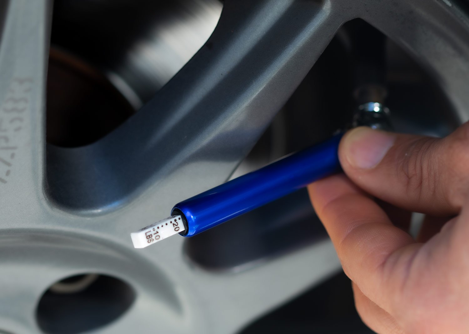 Calibrador pequeño de llantas Max. 50 PSI. Con gancho sujetador. Colores sólidos.