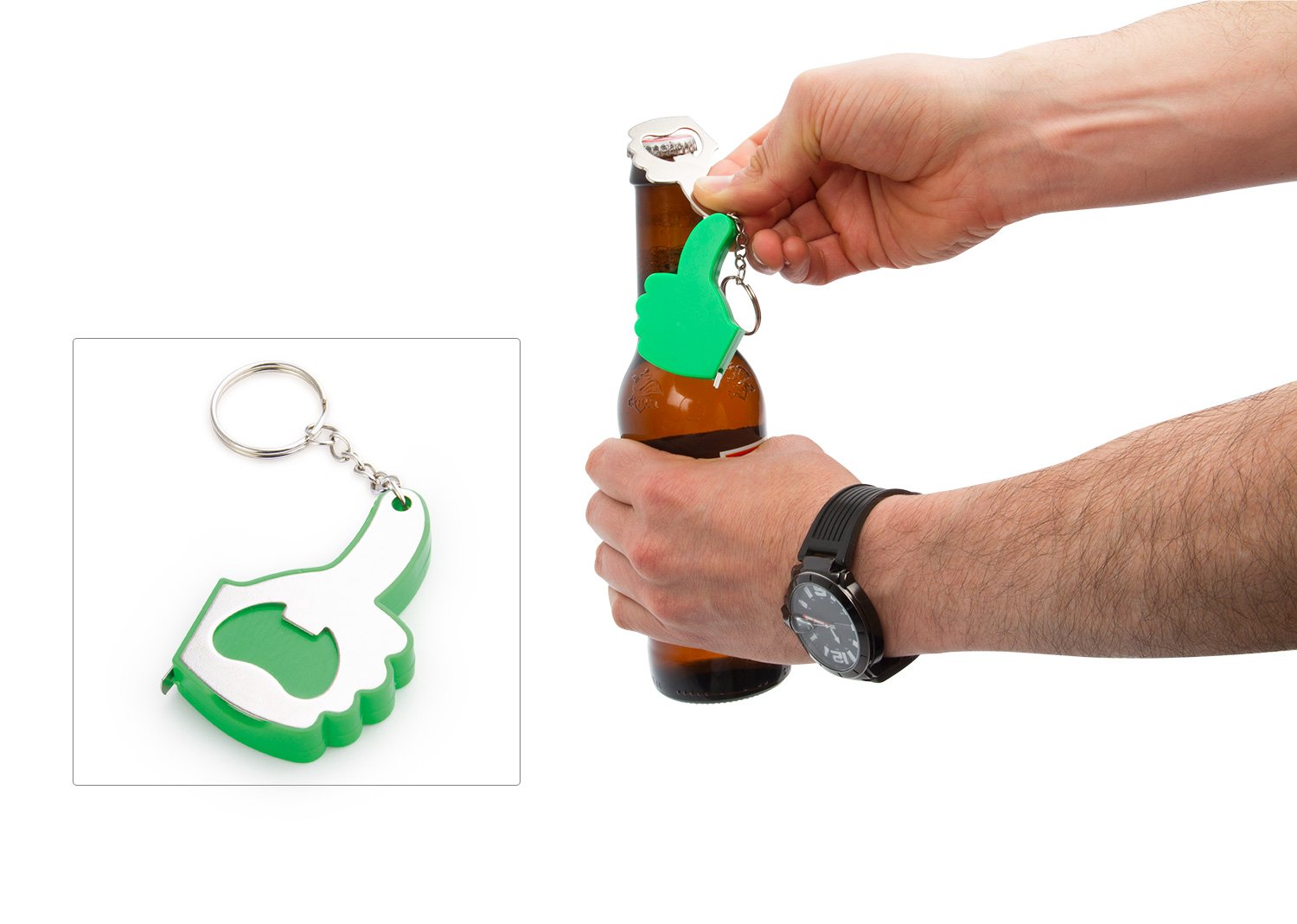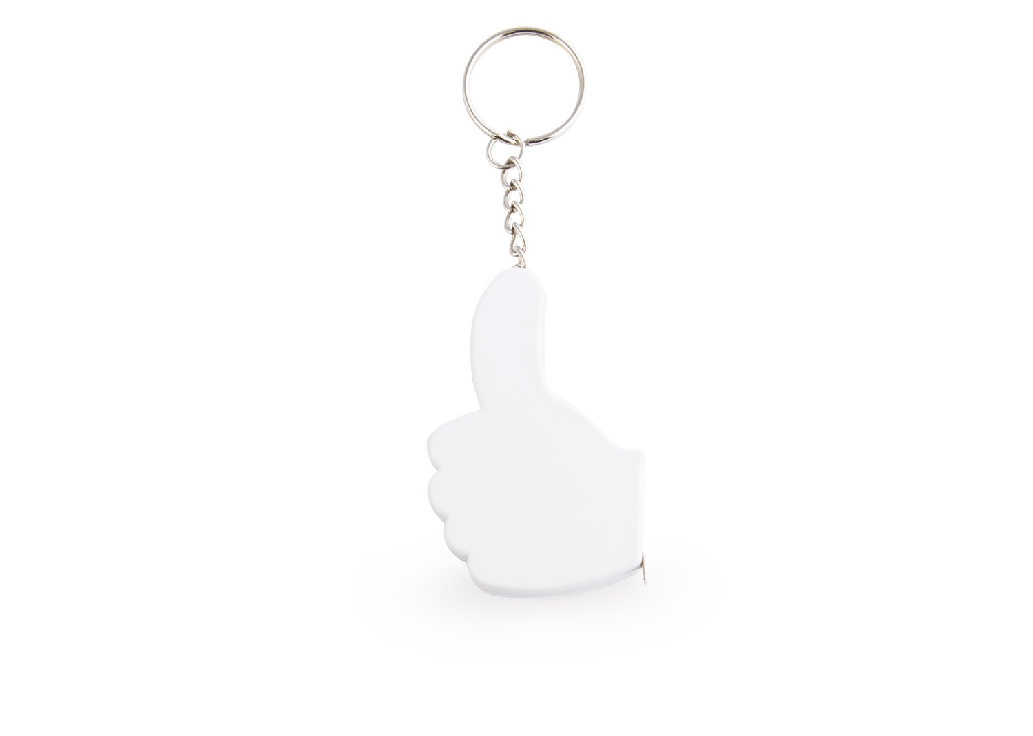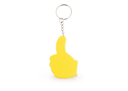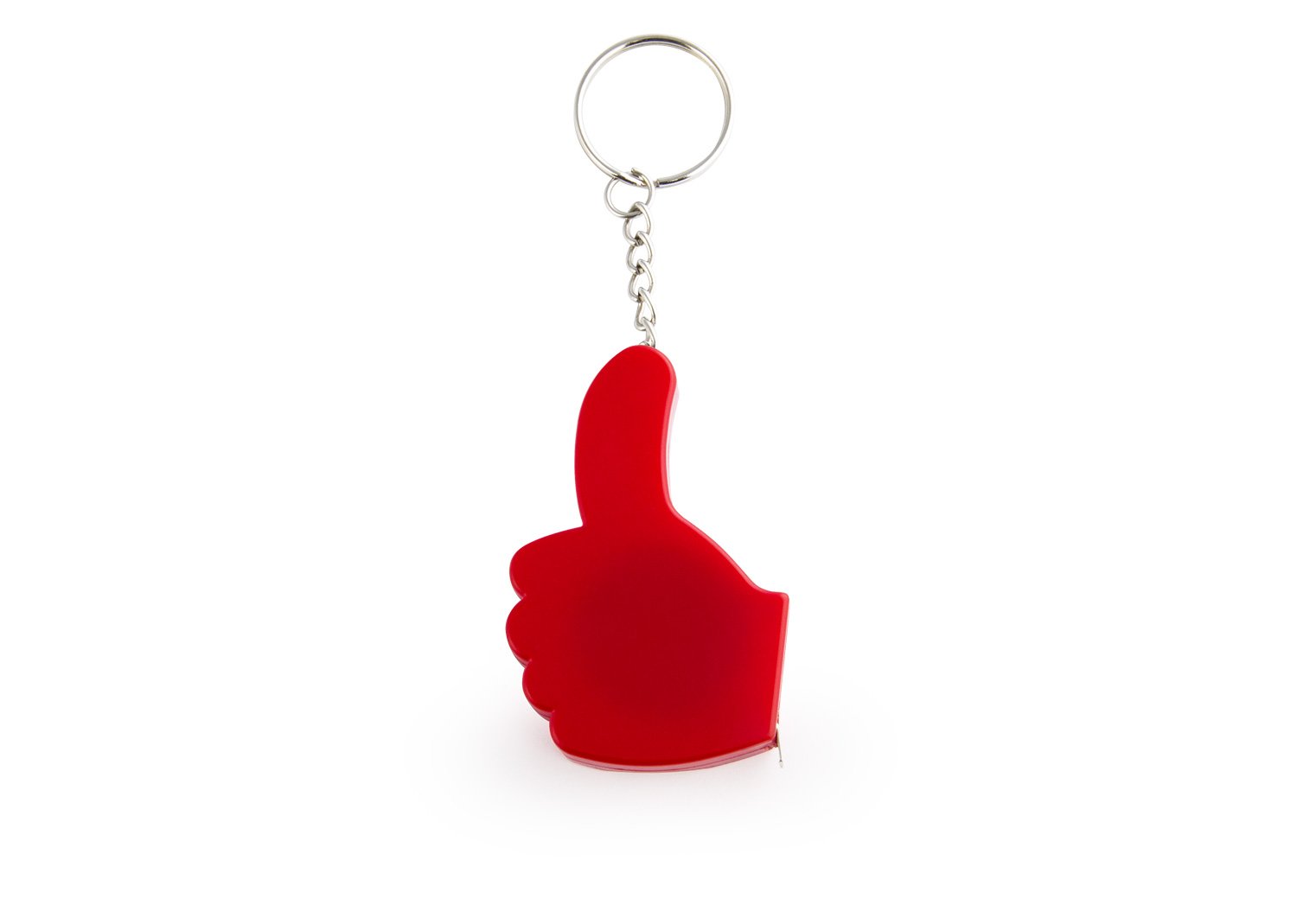 Llavero con destapador en forma de mano. Cinta métrica metálica de 1 metro/39 pulgadas.
