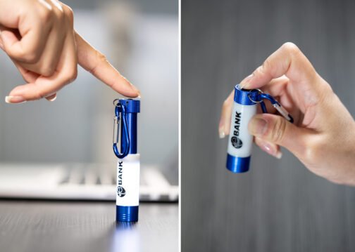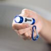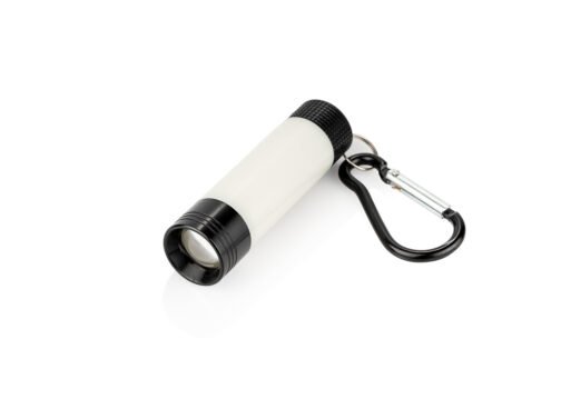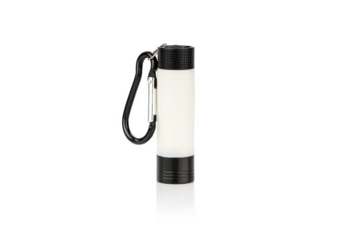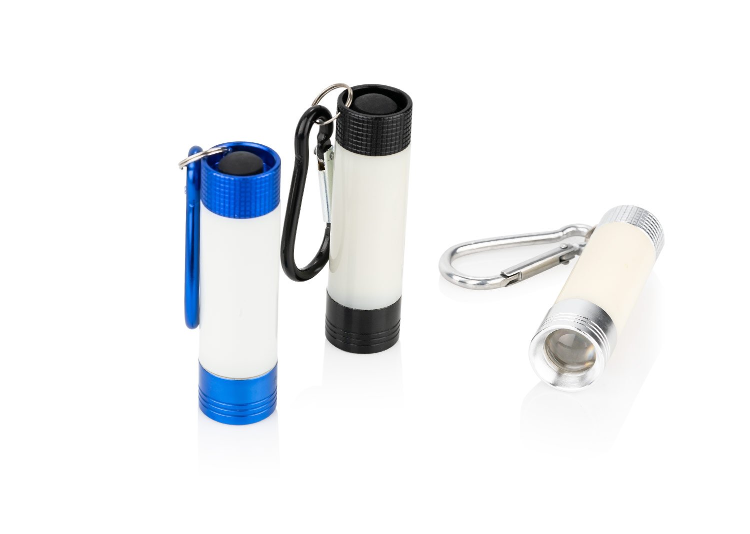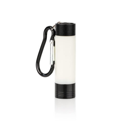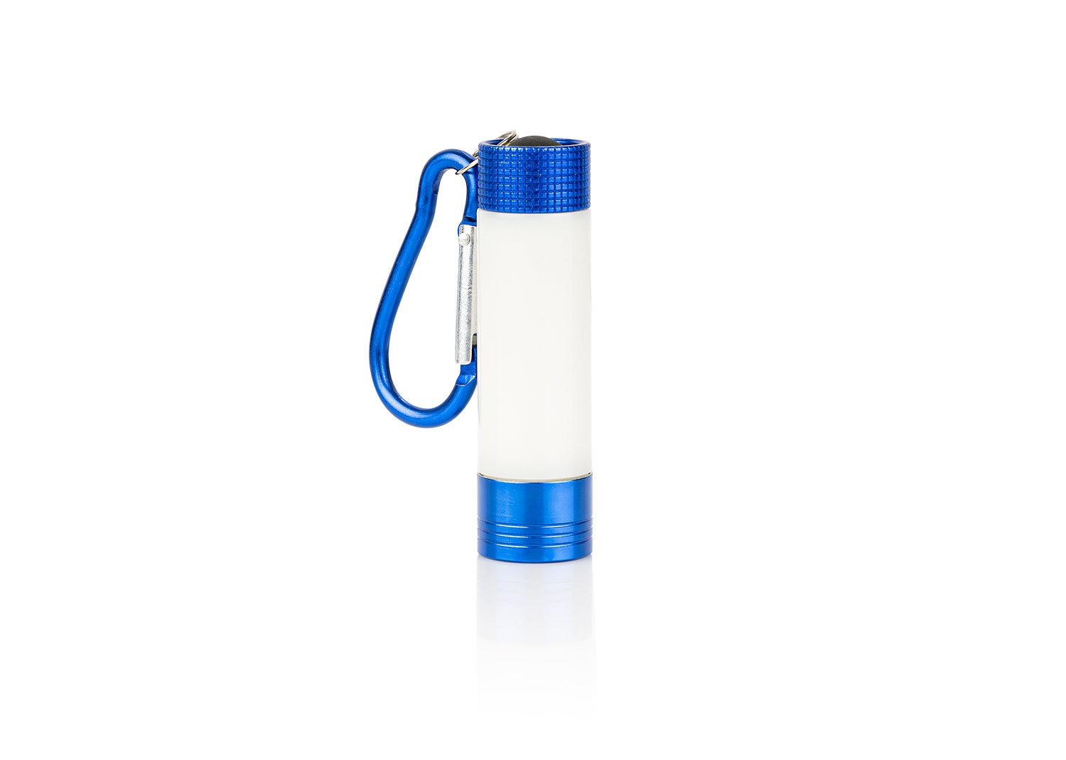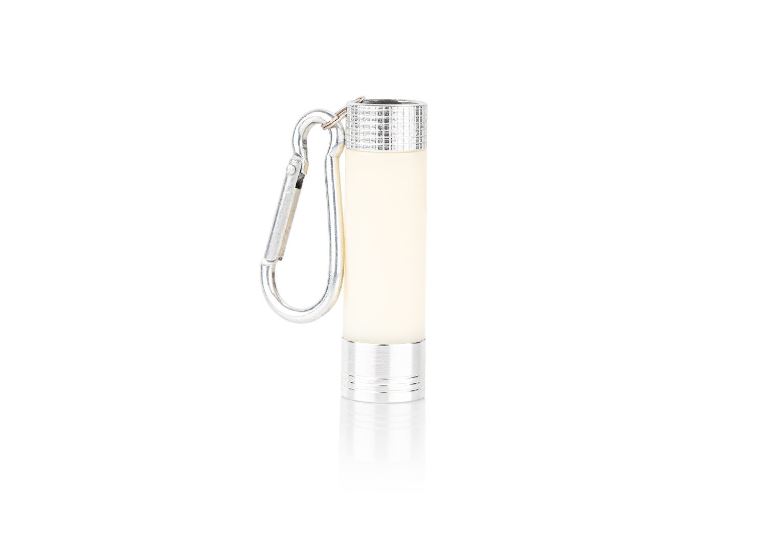 Mini linterna con gancho carabinero para transportar fácilmente. Incluye 4 baterías tipo LR44.