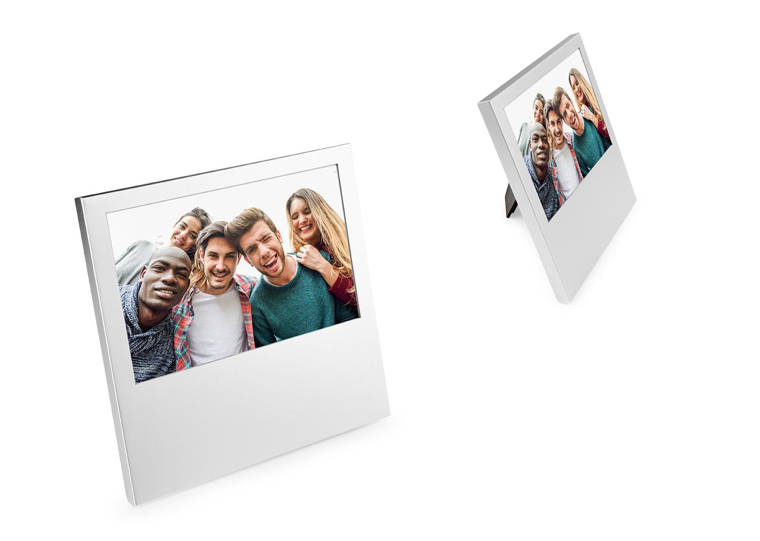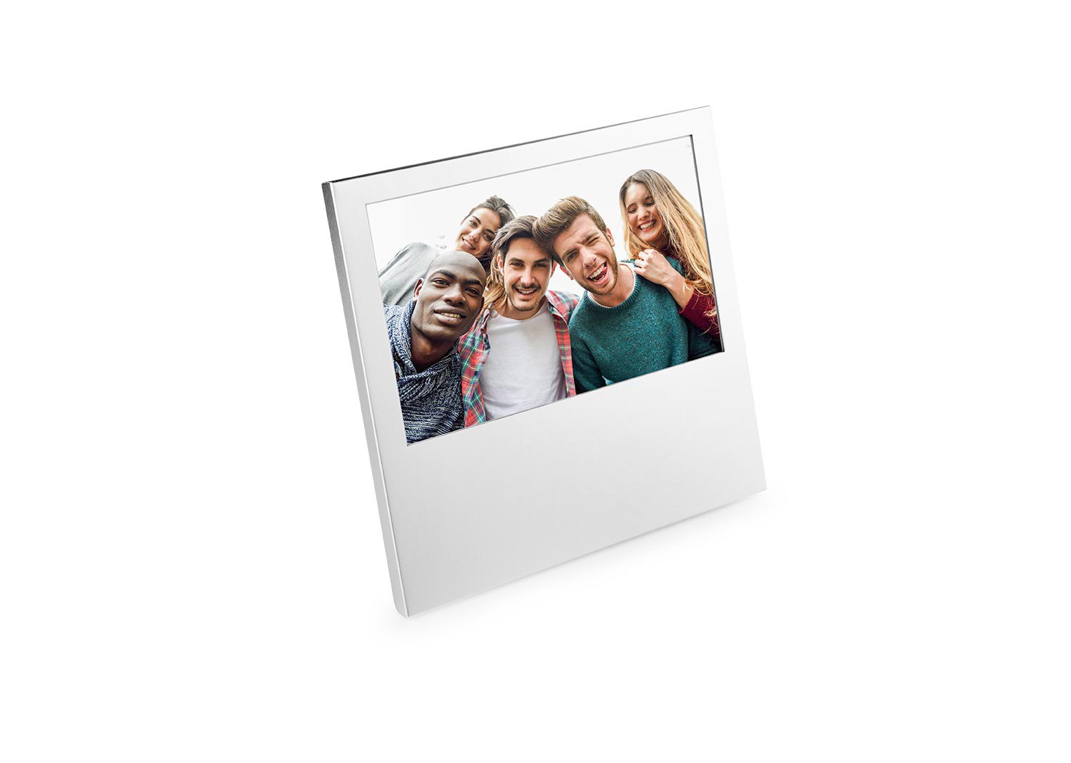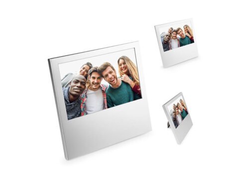 Portaretratos en aluminio, diseño cuadrado. Tamaño mediano, tamaño de foto de 10 cm x 15 cm.