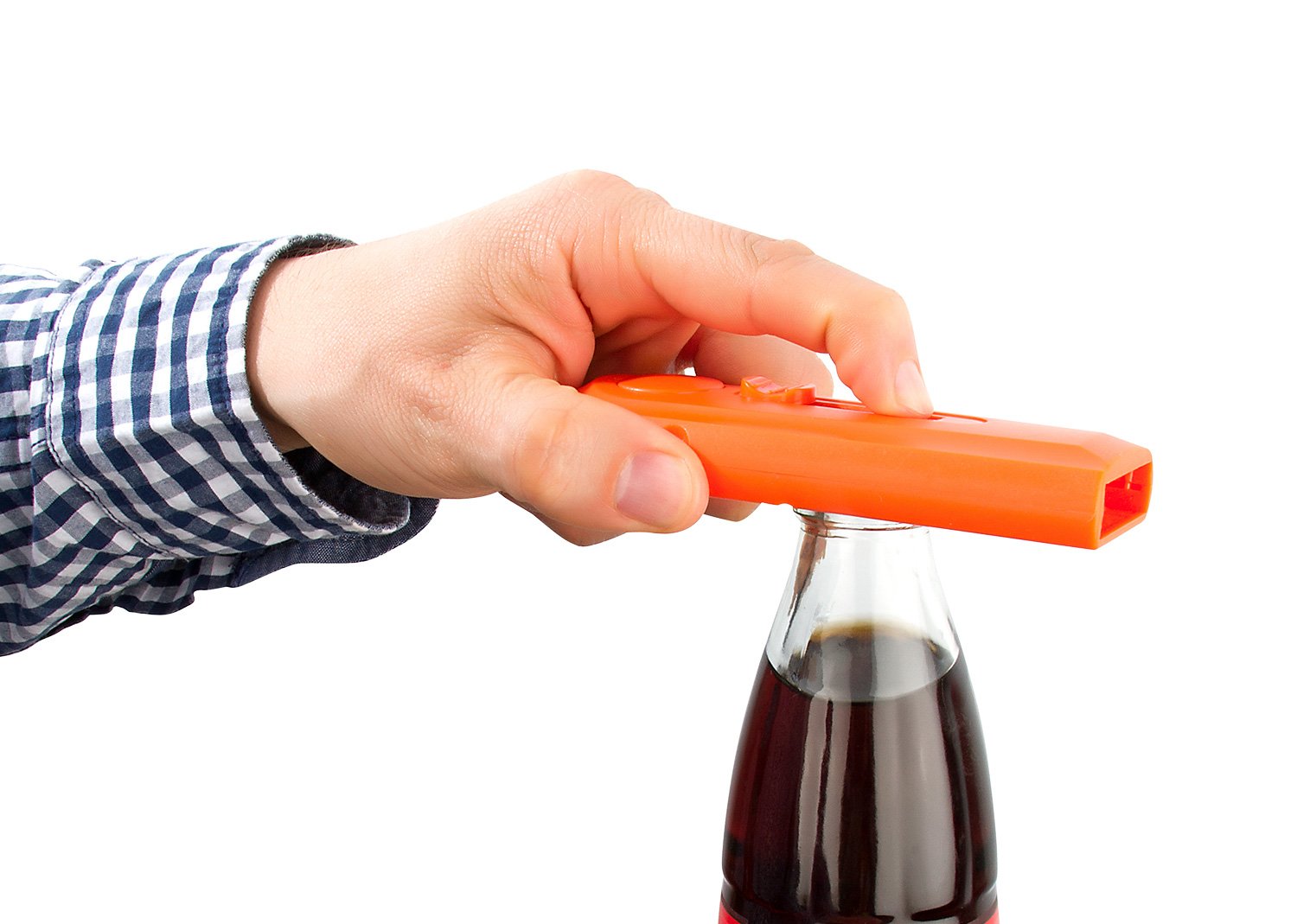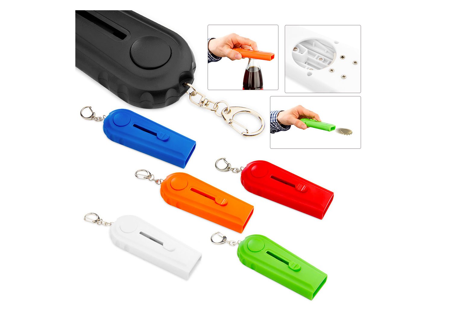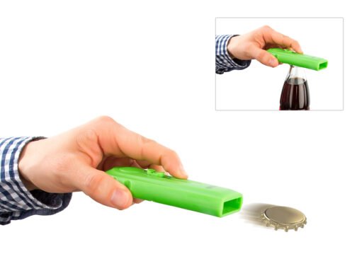 Destapador con función de lazador de tapa, con gancho carabinero.