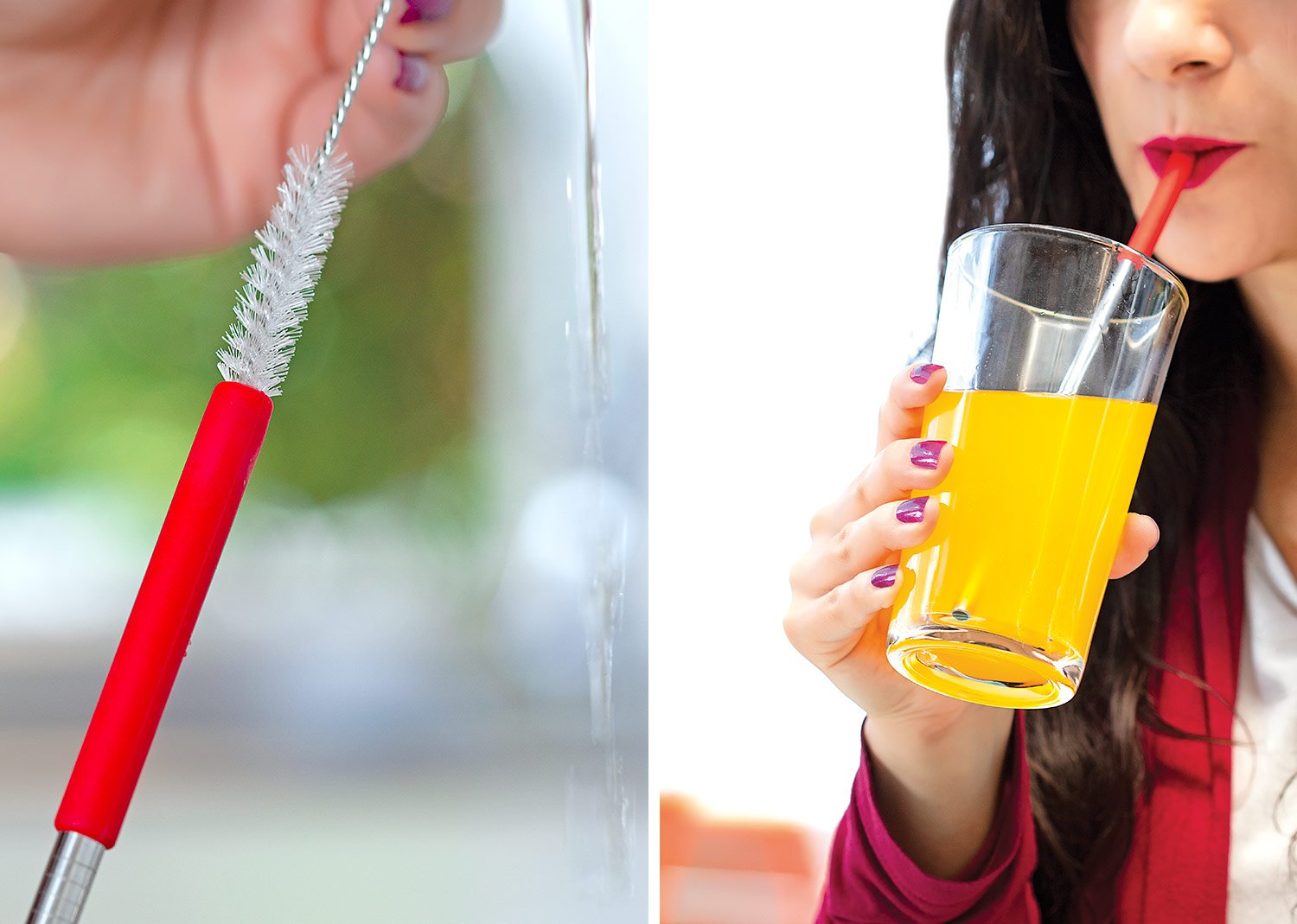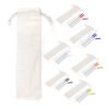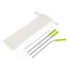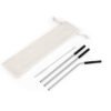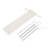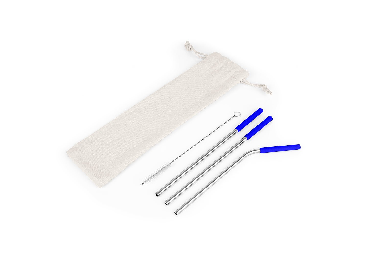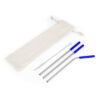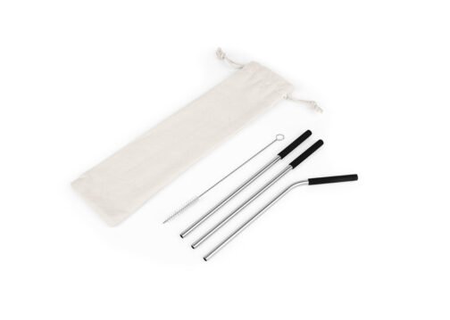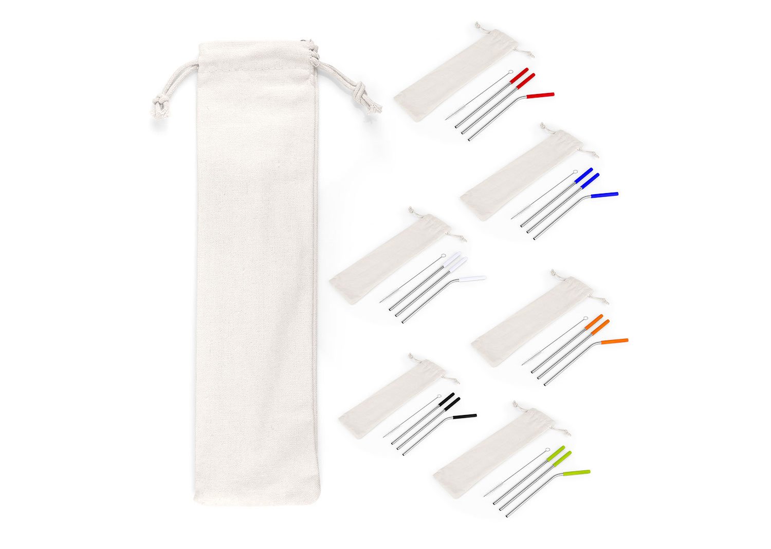 Set de pitillos ecológicos x 3 und (uno de ellos es curvo), con boquilla en silicona, cepillo para limpiarlos y estuche textil con cordón. Producto de uso personal. No se aceptan devoluciones.