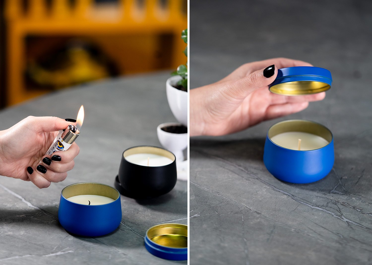 - MATERIAL: Caja metálica, cera de parafina y aroma