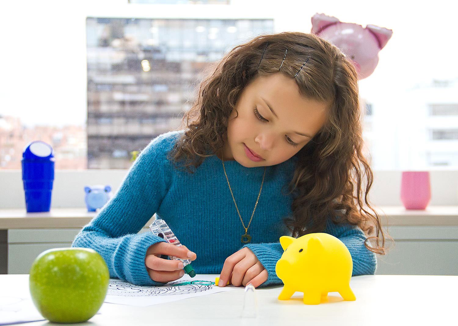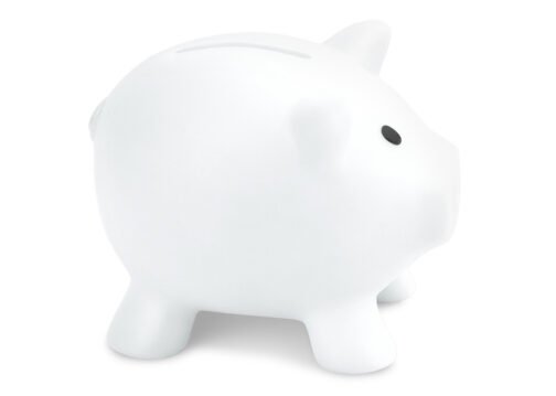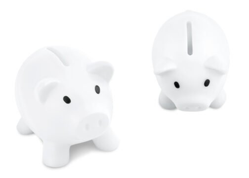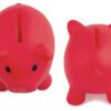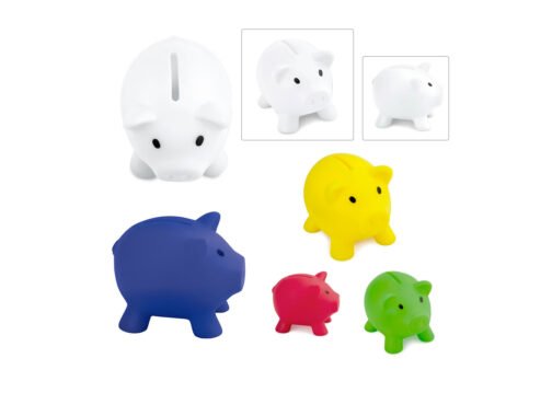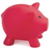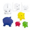 Alcancía con forma de cerdo en colores vibrantes. Con tapón en la parte inferior para vaciar la alcancía.