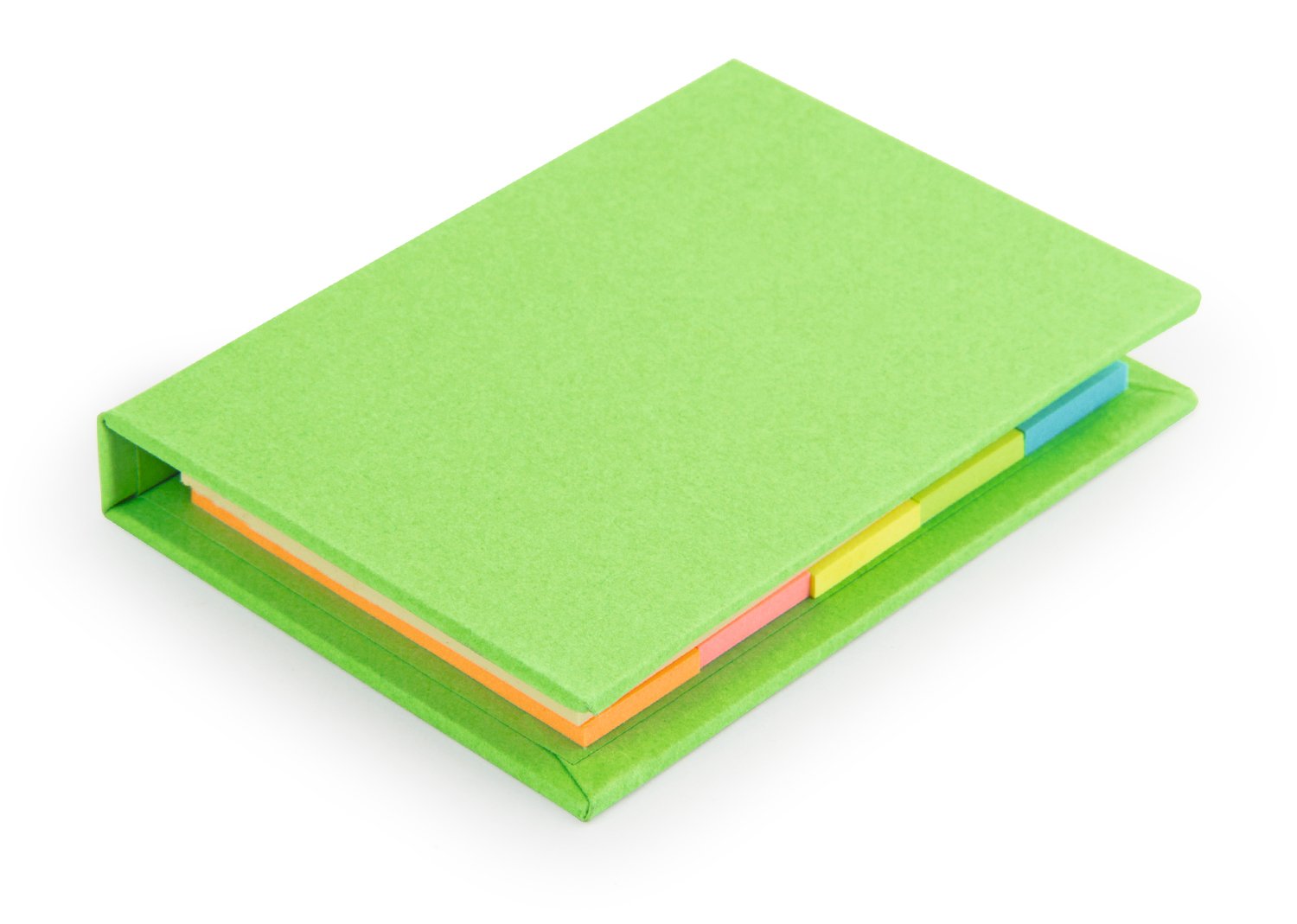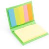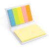 Set con taco de memos amarillos de 50 hojas y 5 tacos de banderas adhesivas en papel de colores de 25 hojas c/u. Tapa dura. Tamaño aproximado de las hojas: A8.