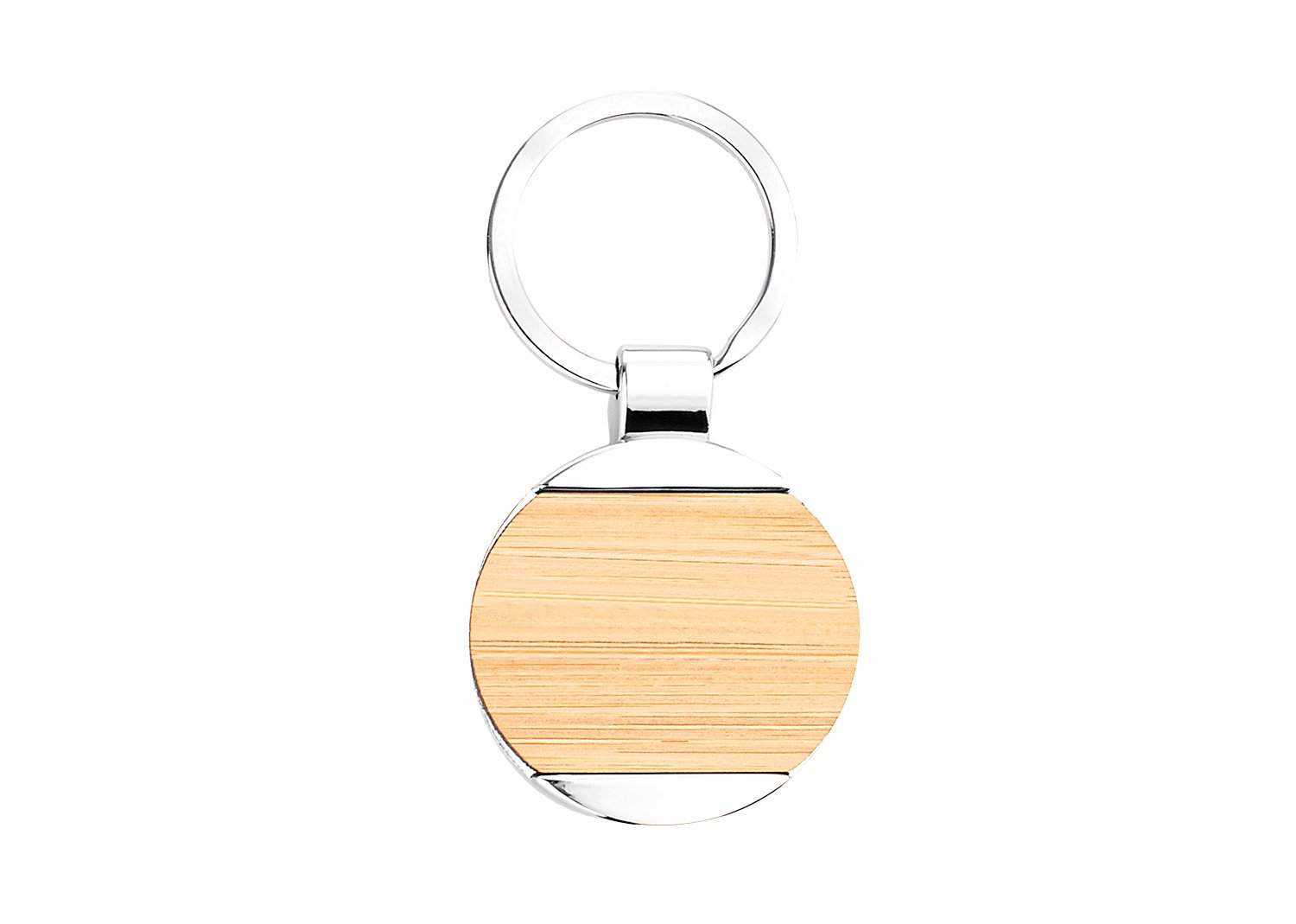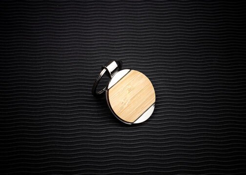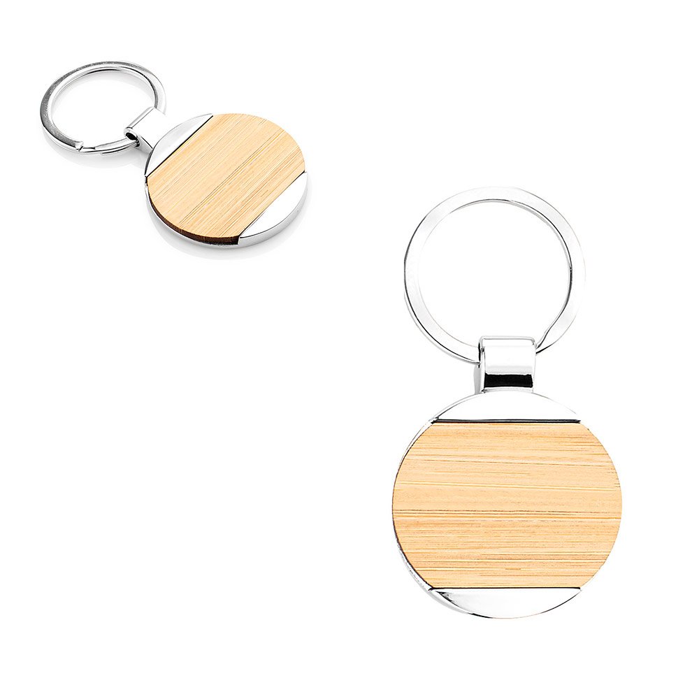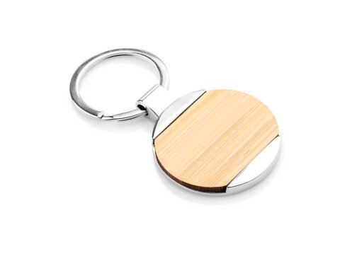 Llavero metálico redondo con cubierta en Bambú