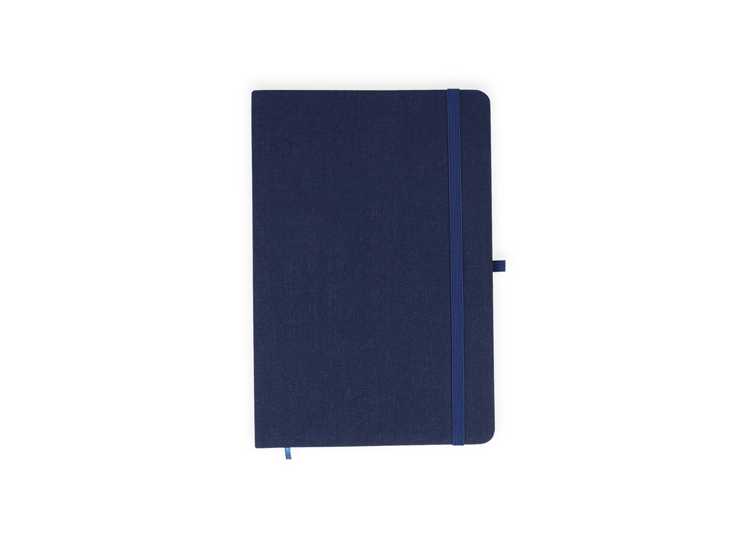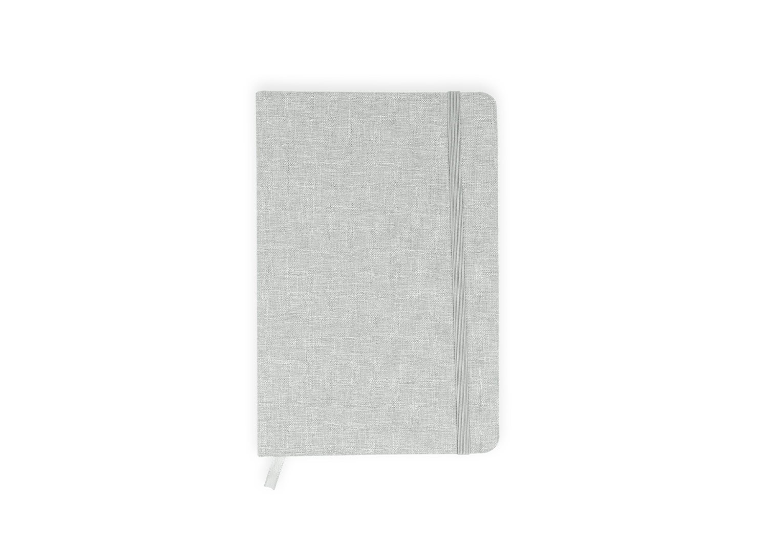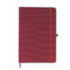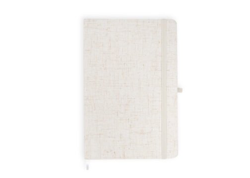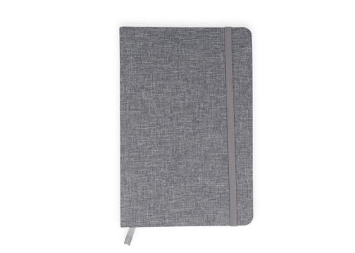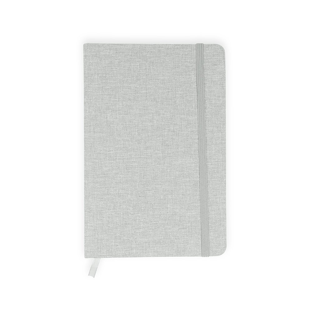 Libreta con cubierta dura forrada en algodón. Con banda elástica de cierre. Contiene 80 hojas rayadas. El tamaño aproximado de la hoja: A5.