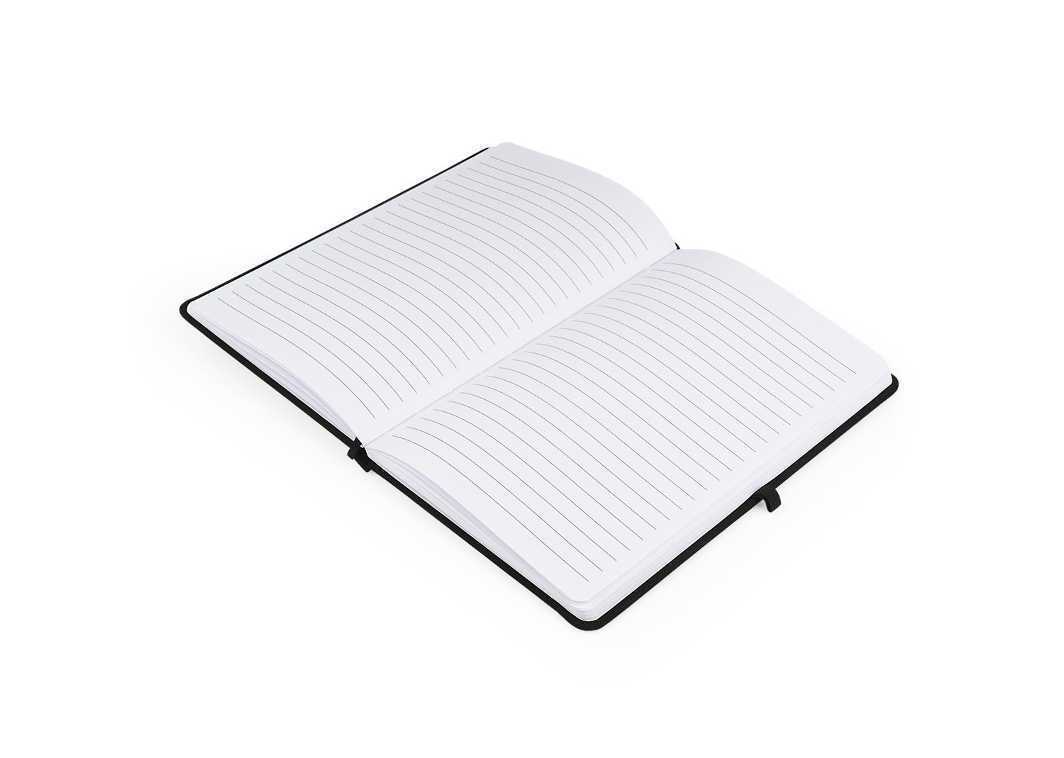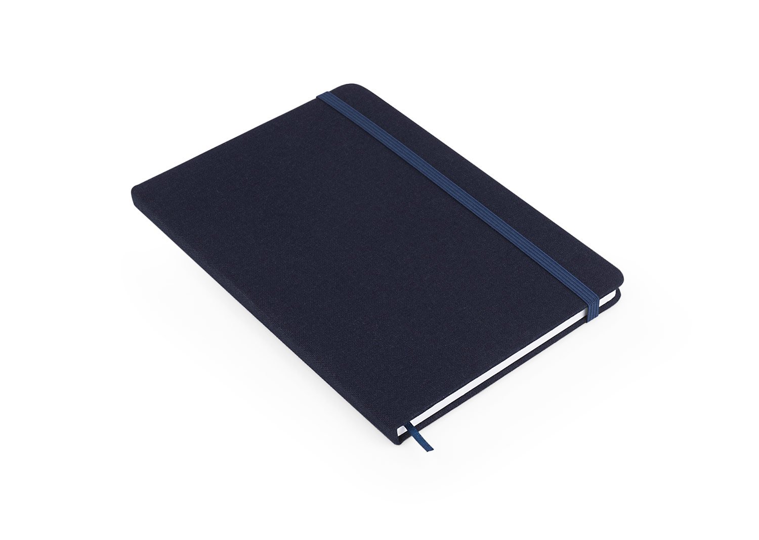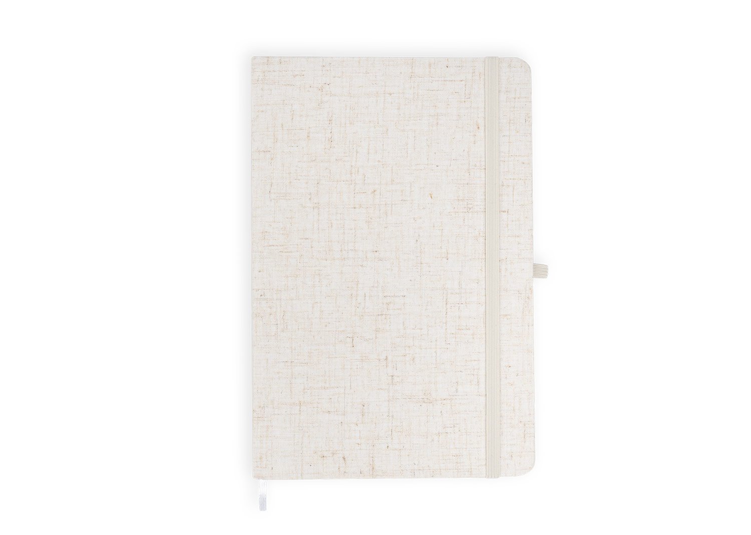 Libreta con cubierta dura forrada en algodón. Con banda elástica de cierre. Contiene 80 hojas rayadas. El tamaño aproximado de la hoja: A5.