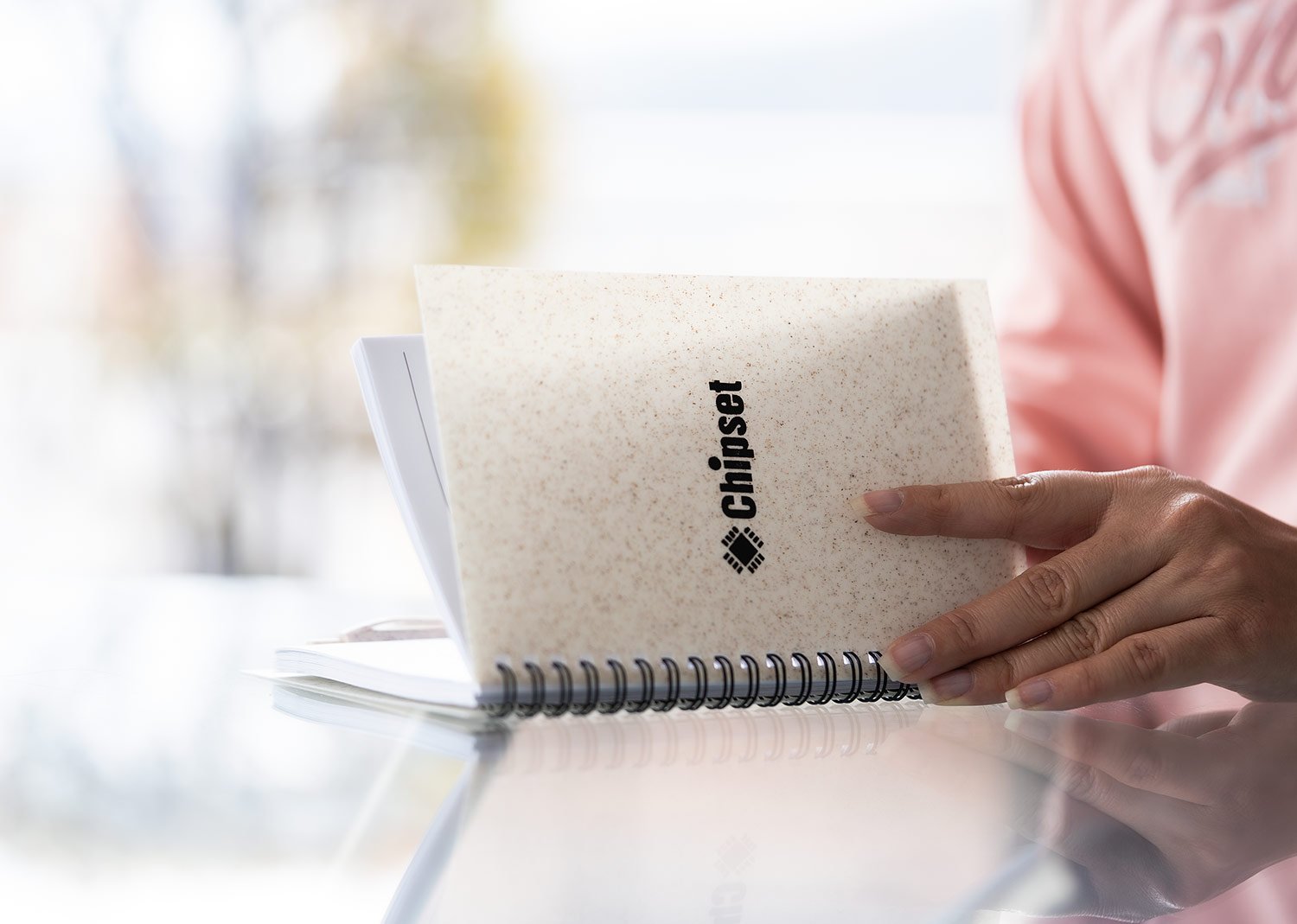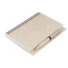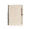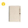 Libreta argollada ‘doble O’ con cubierta elaborada en paja de trigo, 80 hojas rayadas. Tamaño aproximado de la hoja: A6. Incluye bolígrafo elaborado en paja de trigo.