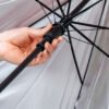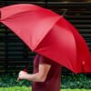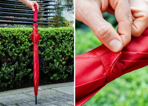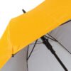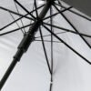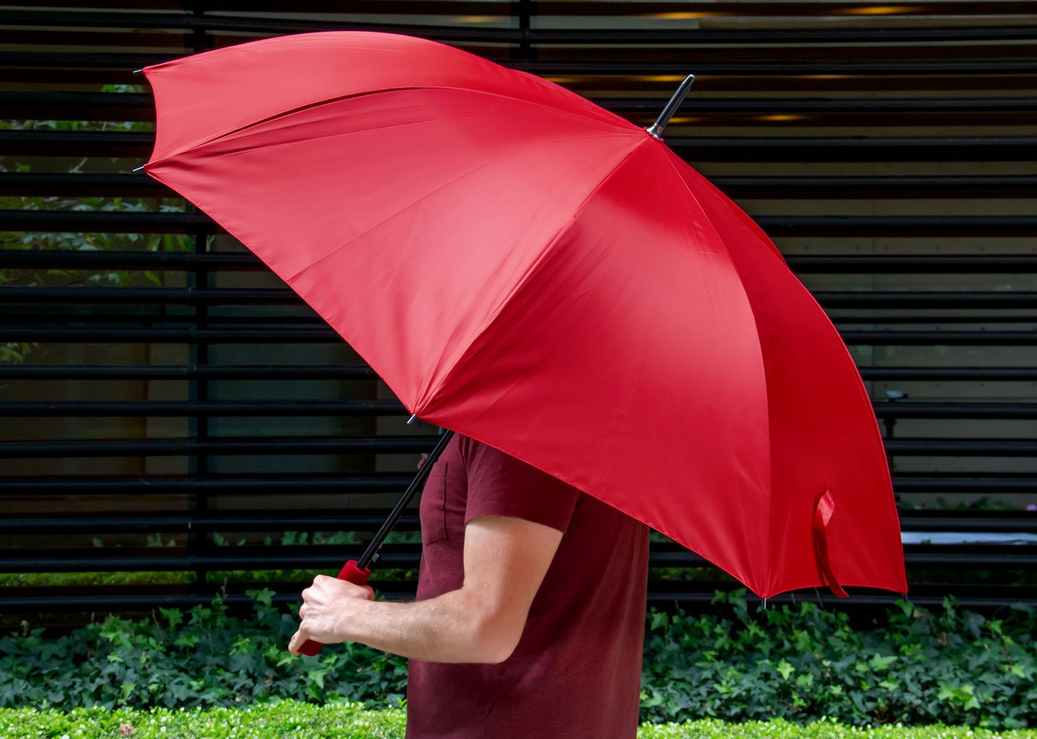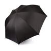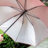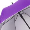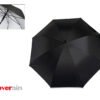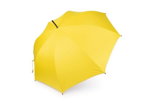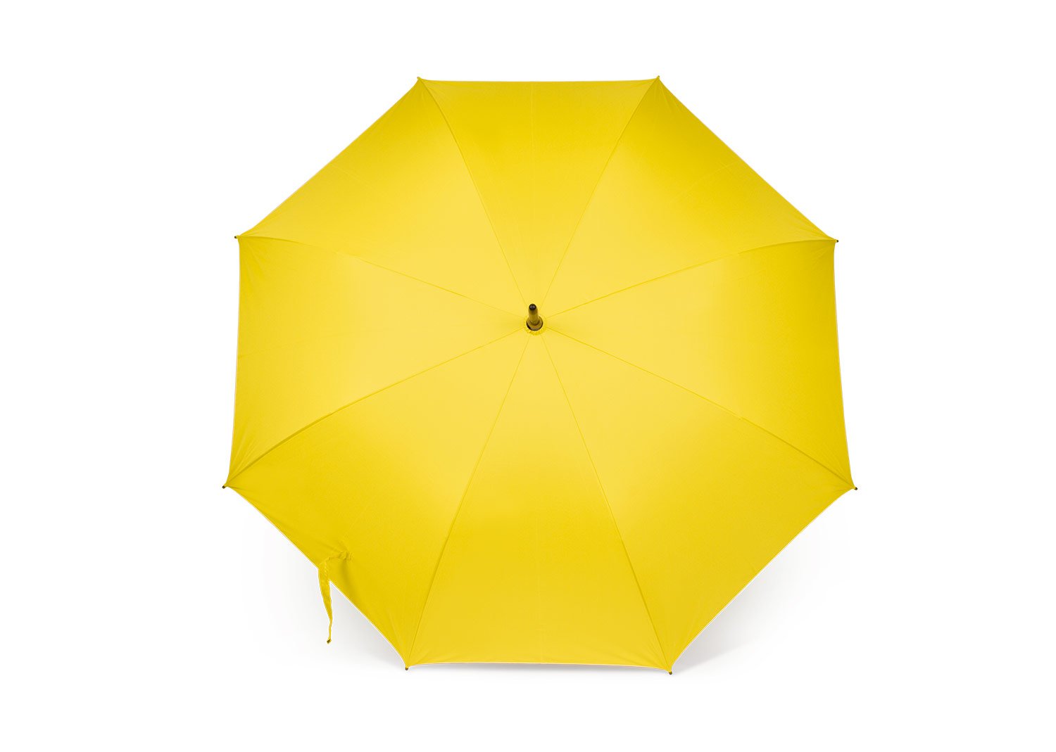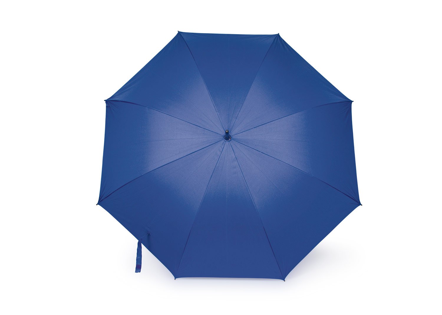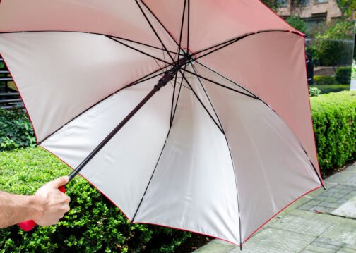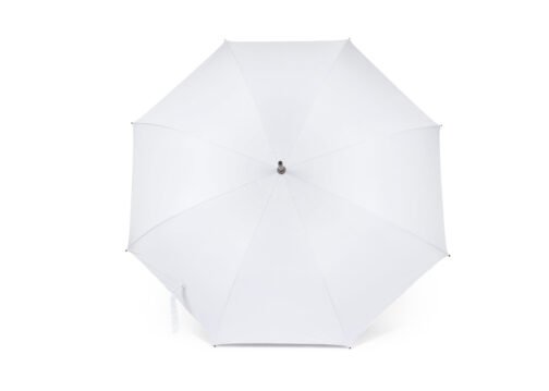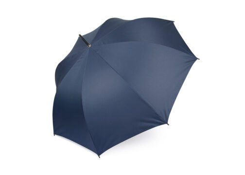 Paraguas tipo Golf con doble recubrimiento interior plateado. Apertura automática y cierre manual. Mango recto del mismo color de la tela.