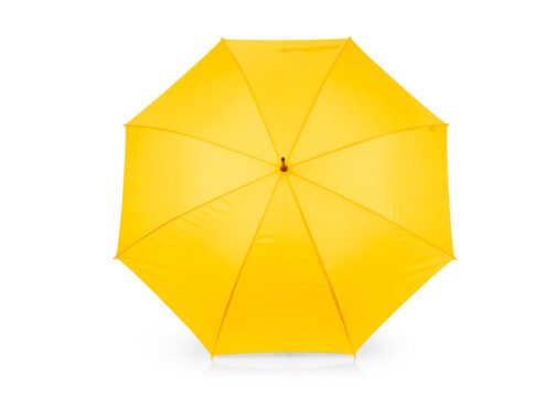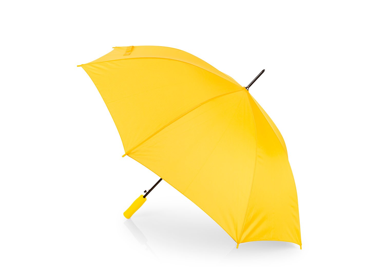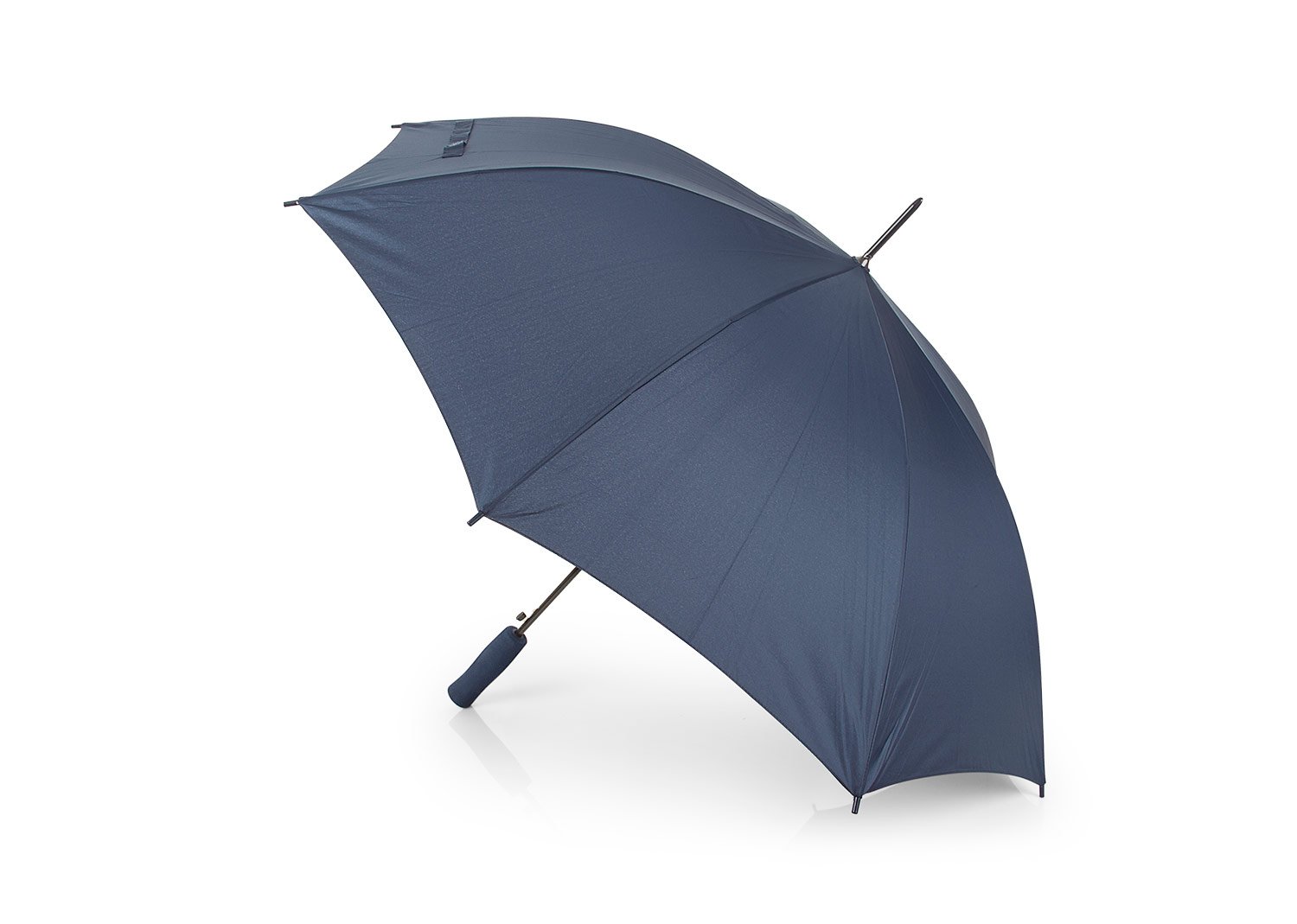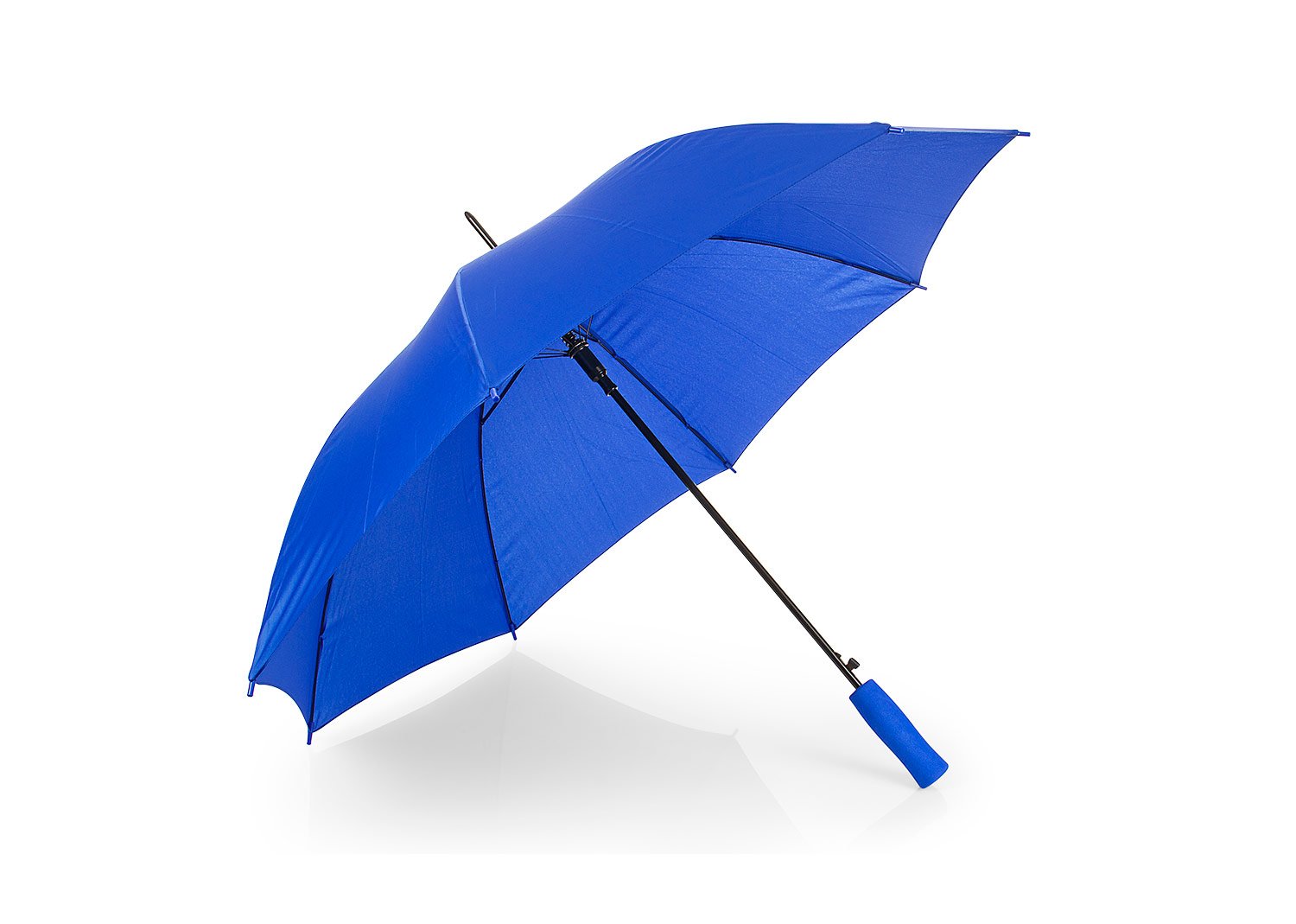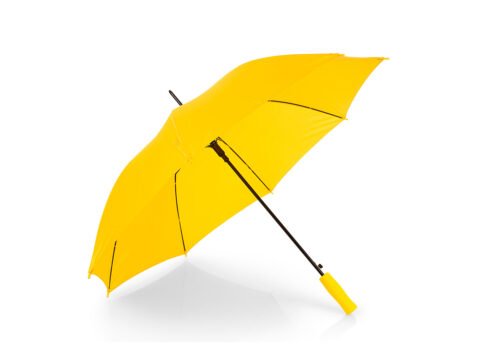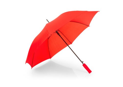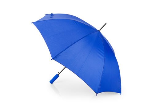 Apertura automática y cierre manual, marco y costillas chapadas. Mango en goma EVA del mismo color del paraguas. Tela pongee 190t, puntas de plástico.