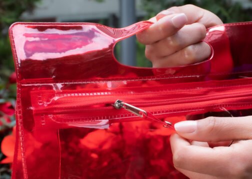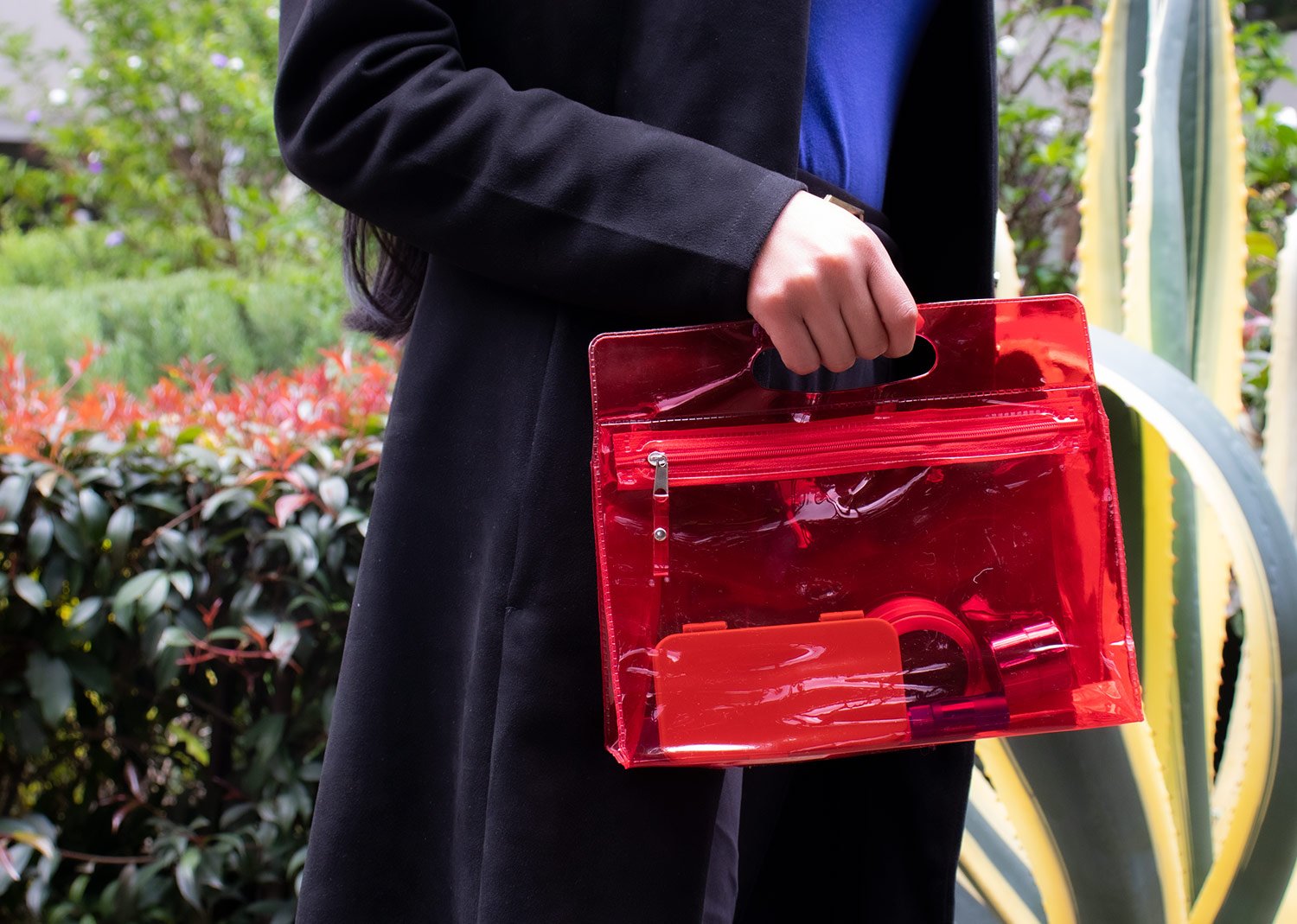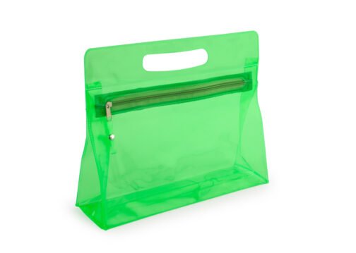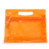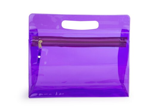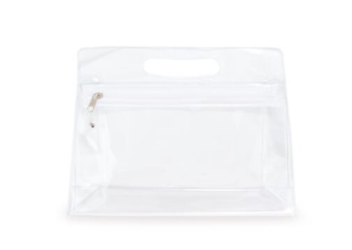 Estuche plástico con cremallera y agarradera. Ideal para los cosméticos, productos de aseo personal en viajes, etc.