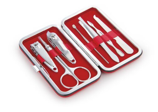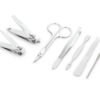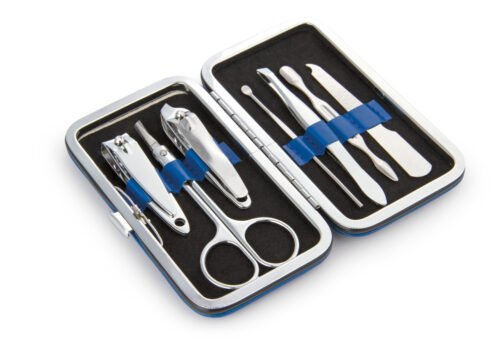 Set de manicure con cierre a presión que incluye: Lima, limpiador, depilador, bajacutículas, 2 cortauñas y tijeras.