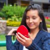 Espejo doble, vista normal y de aumento, cierre a presión. Diseño de corazón.