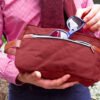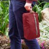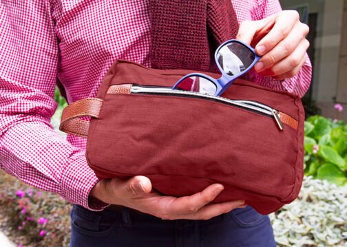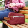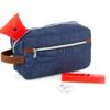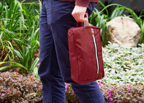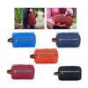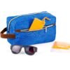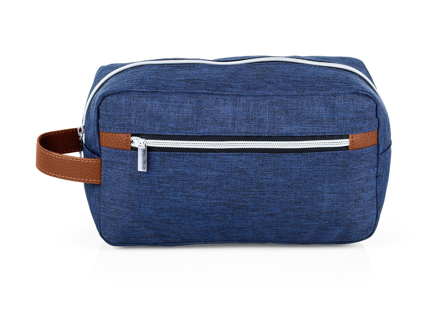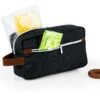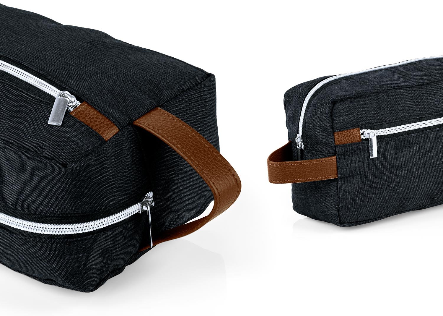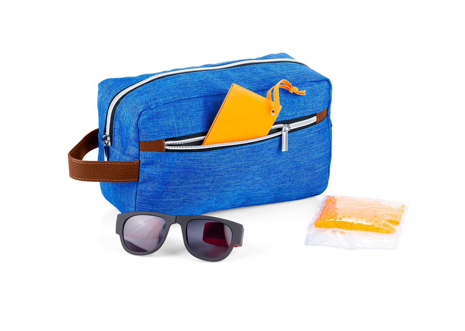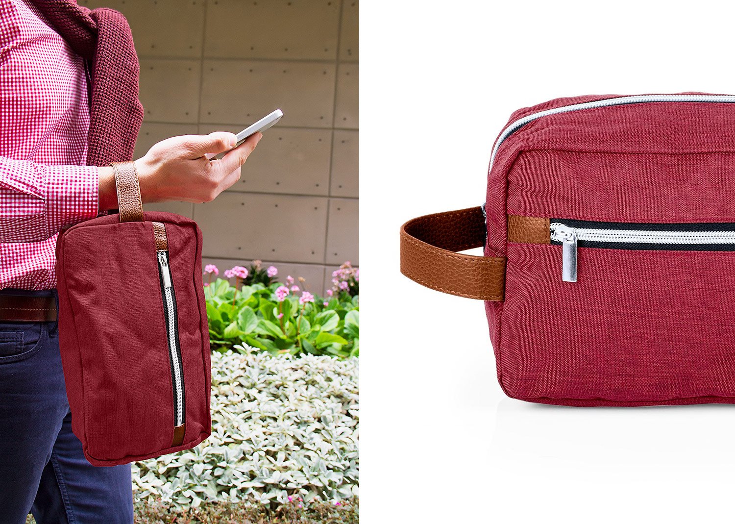 Estuche con manija imitación cuero, bolsillos principal y auxiliar con cierre de cremallera. Ideal para los productos de aseo personal y/o cosméticos.