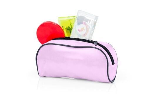 Estuche satinado con cremallera ideal para organizar el maquillaje y/o los productos de aseo personal.