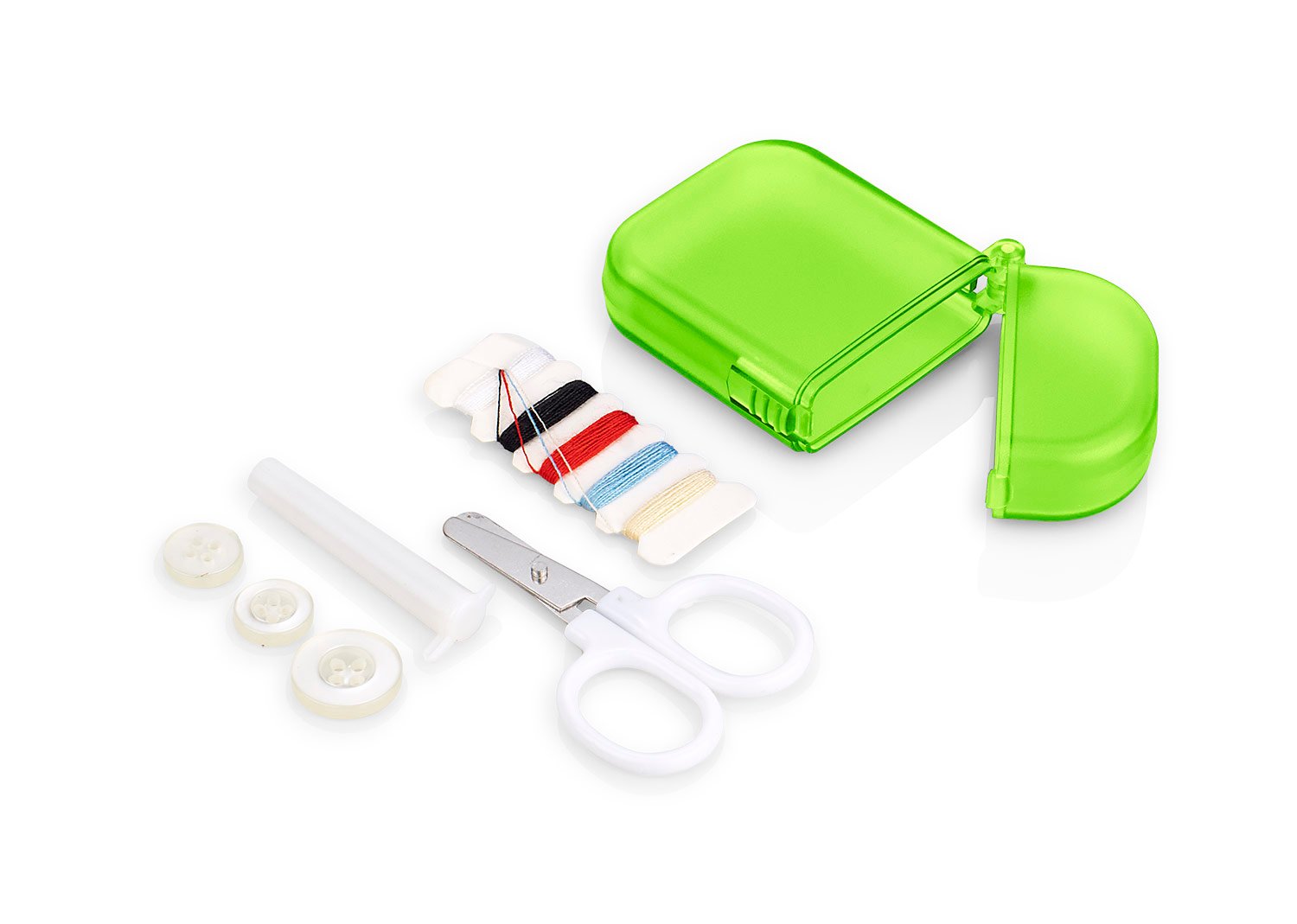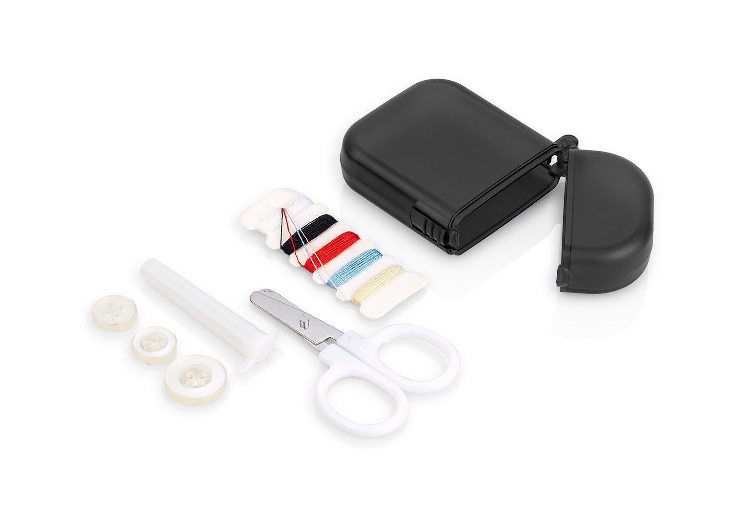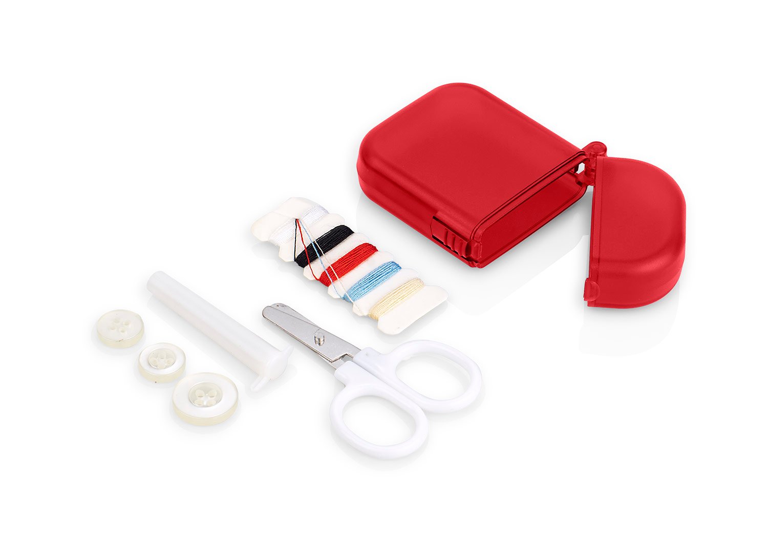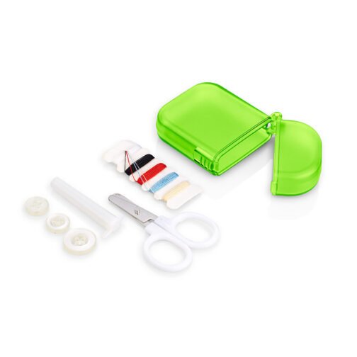 Minicosturero incluye hilos de colores, Estuche para guardar agujas, tijeras, tres botones.
