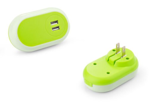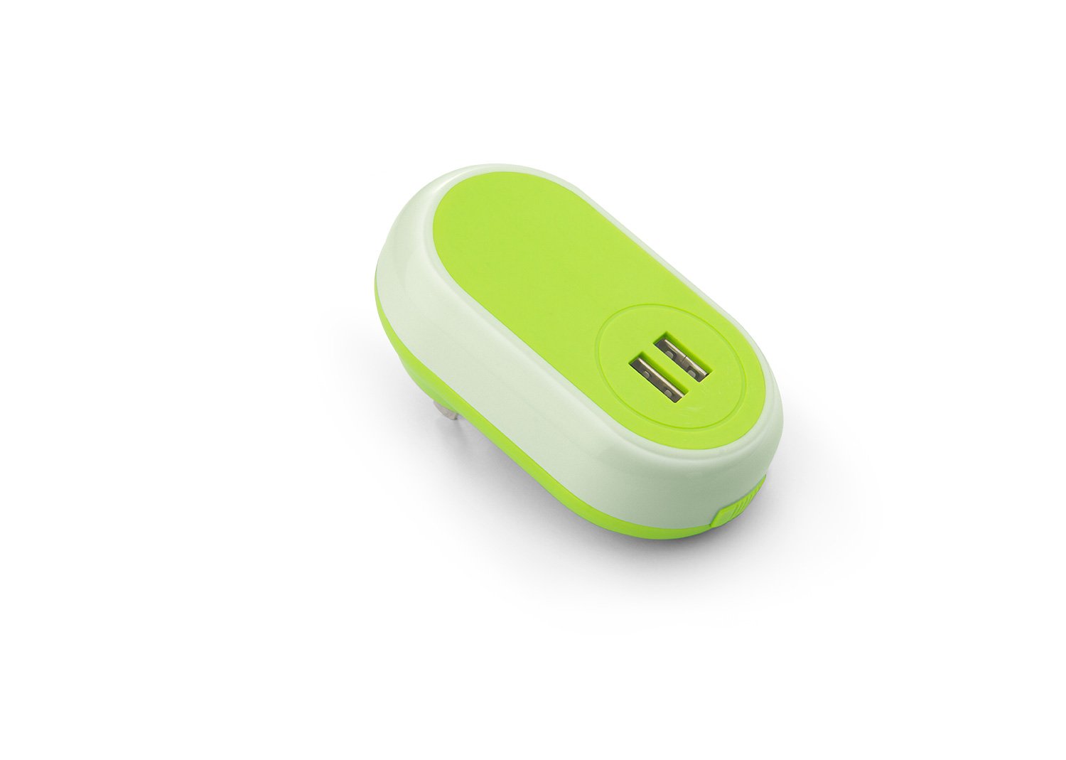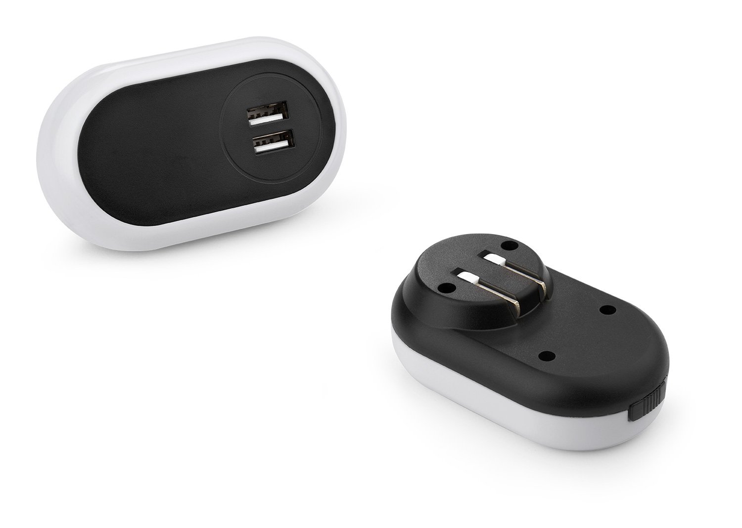 Cargador de pared con doble puerto USB y luz nocturna. Salida 5V-2.1A