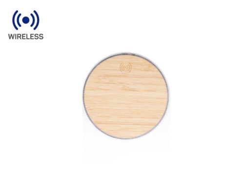 Carcasa en madera de bambú con diseño ecológico y natural. Indicador de estado de carga y compatible con dispositivos equipados con tecnología de carga inalámbrica. Amplia superficie de marcaje para dispositivos de diferentes tamaños.