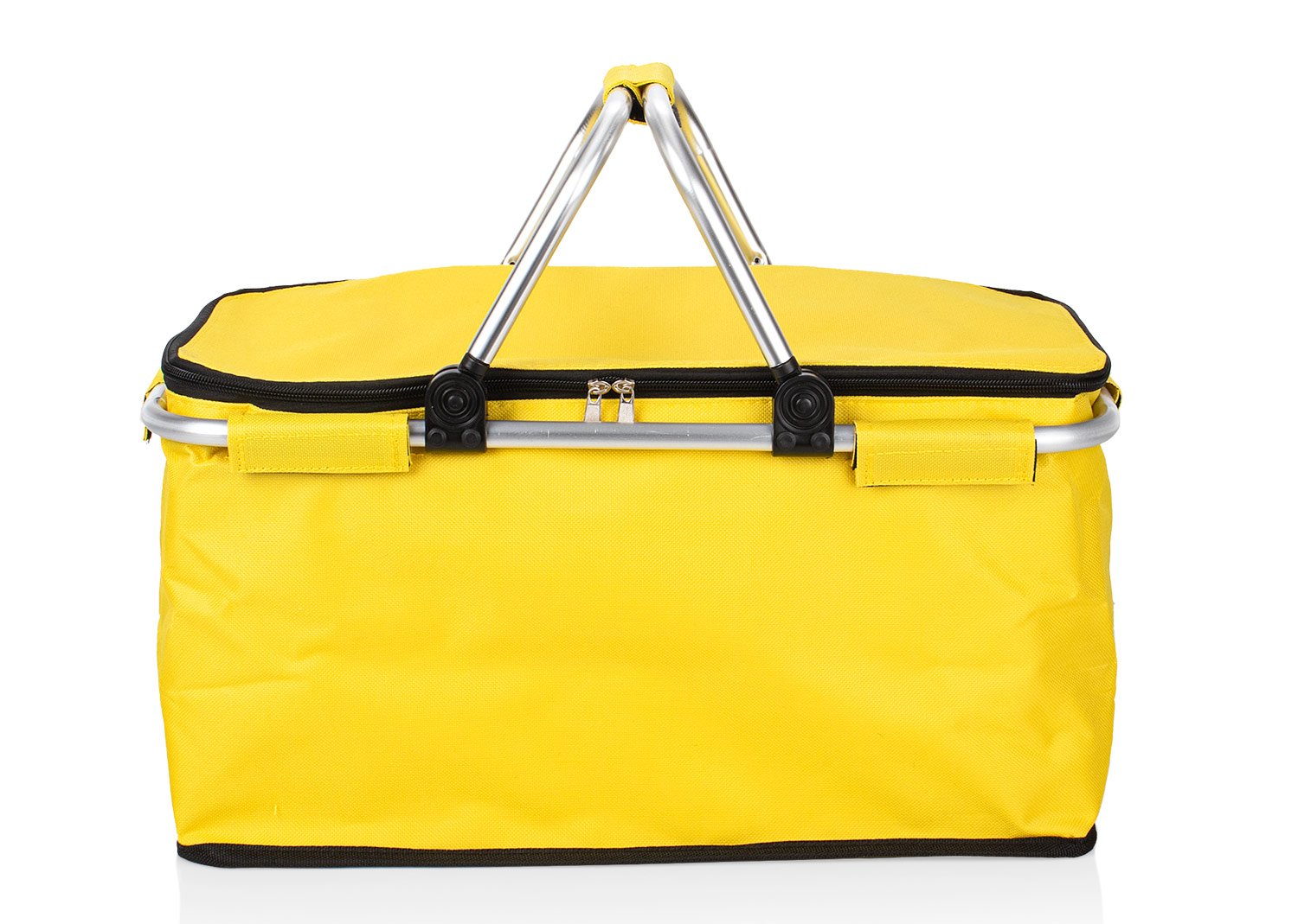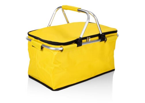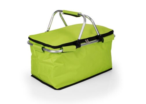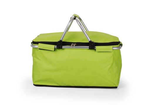 Canasta con agarraderas en aluminio, revestimiento en aluminio, especial para disfrutar del campo en un agradable picnic con la familia o amigos en días de sol. Diseño práctico de utilizar.