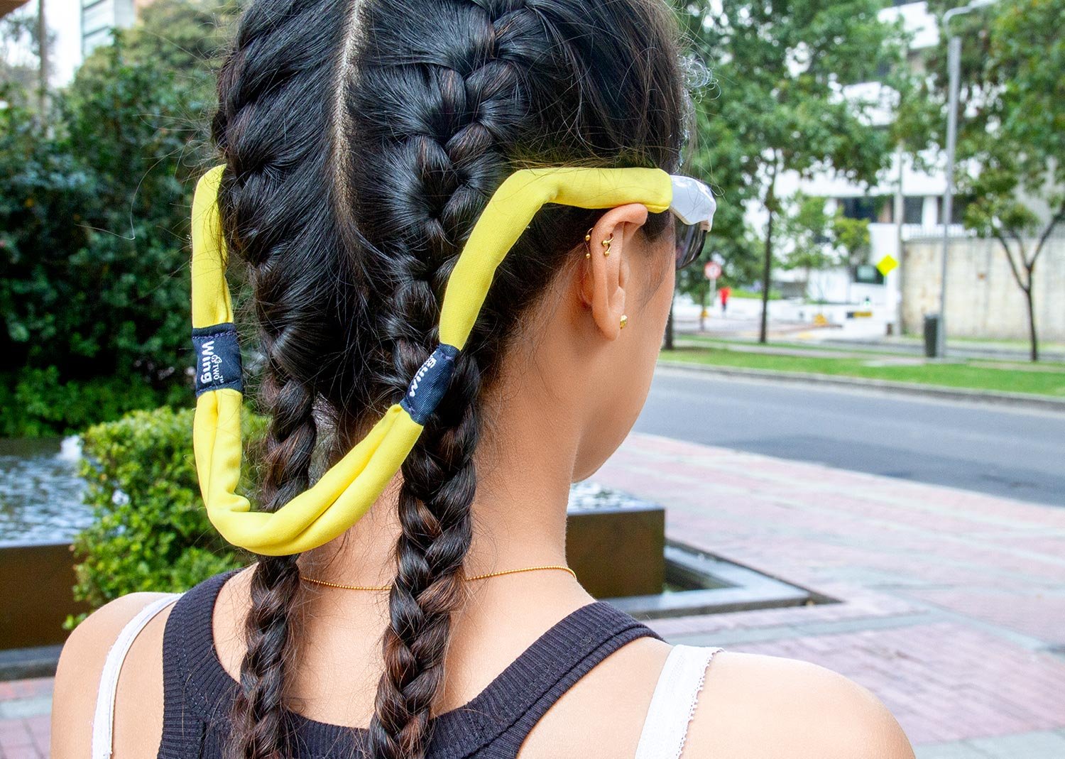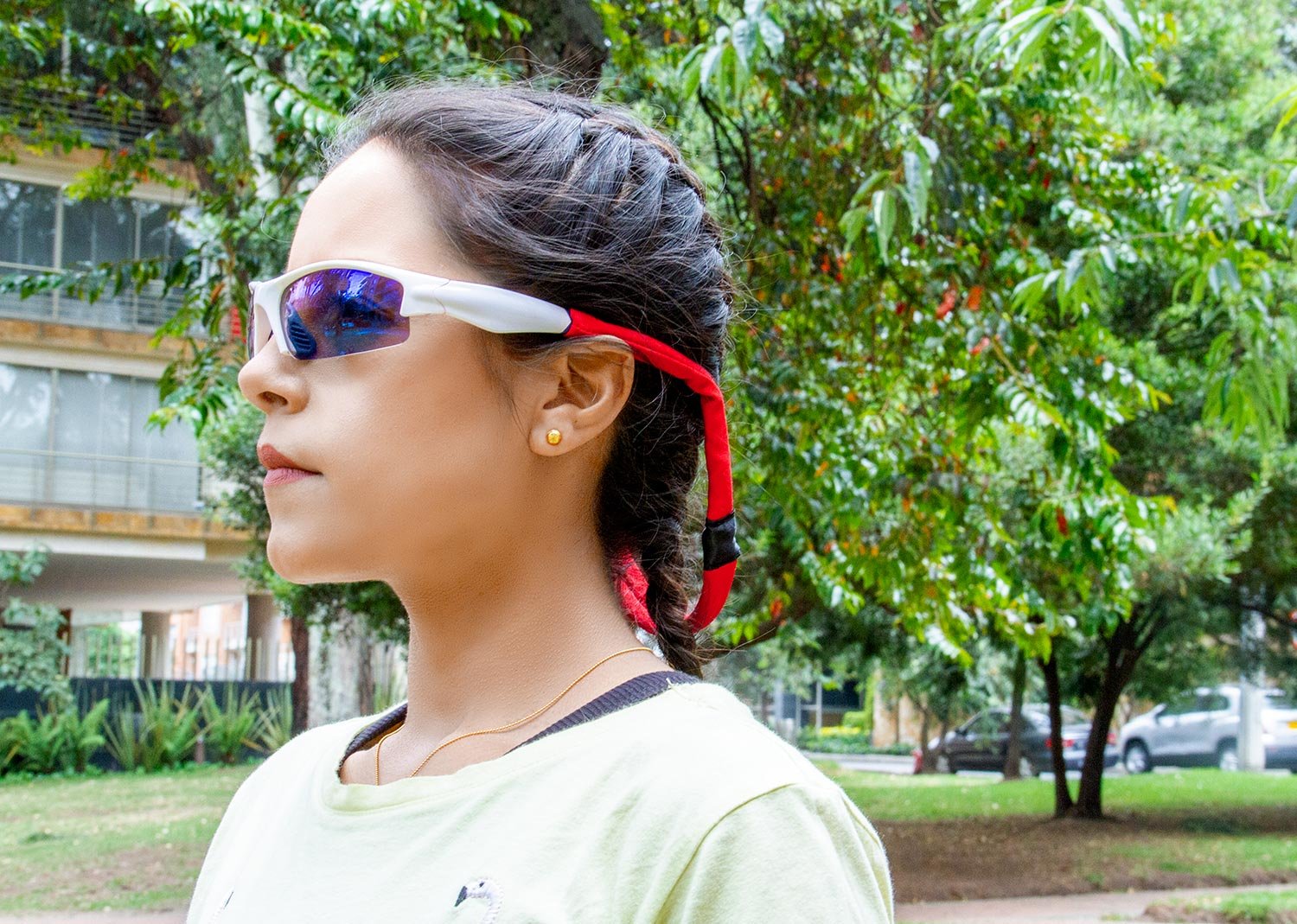 Sujetador para gafas con ajuste anti deslizante. La parte trasera se extiende y se convierte en una práctica funda.